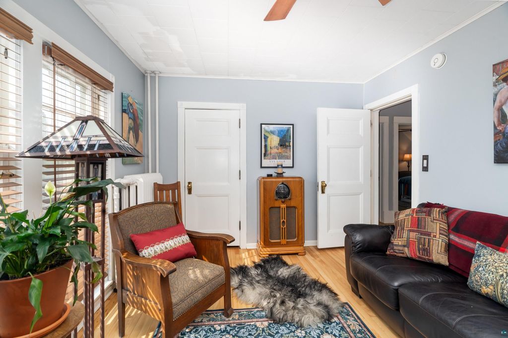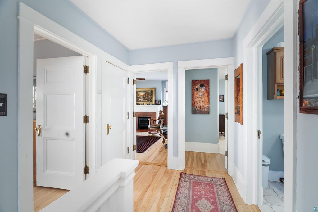 Welcome to The Schildt House (original builders)"”tastefully restored to its original arts & crafts architectural aesthetic from 1909: a three-story house with full-footprintstone basement & bathroom on every level, but with completely updated electrical, plumbing and drainage infrastructure to meet this era's demands. This house gives you old-world charm with 21st century efficiencies. This 5 bed, 4 bath home has had all the hard work done by the current owner to replace outdated knob and tube wiring with new and re-wired breaker boxes with room to expand and brought to current code in both the house and garage with integrated smoke & CO2 alarms, efficient lighting, additional power outlets, & motion-detected closet and outdoor security lighting. Plumbing has been significantly upgraded with a high-efficiency Navien combination boiler for on-demand heat and hot water, and Mitsubishi mini-split air conditioning & backup heating units for each floor. All appliances throughout the house have been installed within the past two years.The main level of the home showcases a large living room with a Vermont Castings wood-burning stove tucked underneath a hearth with updated locally-sourced tile and custom oak mantle. Gorgeous quartersawn oak floors line the foyer, living and dining rooms. Thekitchen has been updated with high-end appliances, quartz countertops, and a Wolf stove complete with Van Gogh-inspired backsplash and exhaust hood. The upperlevel presents 4 beds (one with fireplace!), a full bathroom, and a large landing. The 3rd floor master bedroom has an en-suite full bathroom, in-floor radiant heat,new cork floors & home office space. The basement has a storage room, laundry room, 3/4 bathroom, & workshop. The house is located on a spacious double lot with fenced-in backyard in one of Duluth's premier neighborhoods; an ideal location for a growing family. Mature maples, oaks and fir line the quiet sidewalksfor walking your dog and present an easy stroll to Ordean Middle School and Longview Tennis Courts, Mount Royal, East High School, & Northland Country Club are easily accessible within a five-minute drive. If you're looking for a high-end pet & kid-friendly house with old world soul and 21st century updates, this is it.