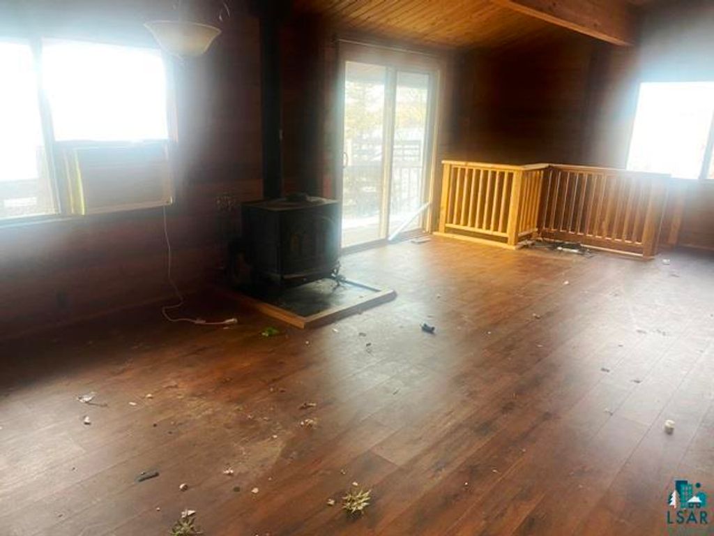 Moose Lake property with +-350' of shoreline and +-3 acres of wooded forest around a 3 bedroom, 2 bath Cedar Log Home. Spectacular views of the lake and BWCAW. Walk out basement, cathedral ceiling with cedar finish throughout, along with sliding glass doors on lake side for a constant view of Moose Lake. The property has a 3 car detached garage with upstairs apartment.