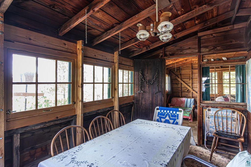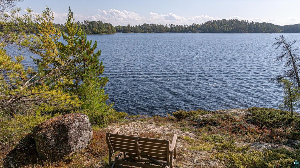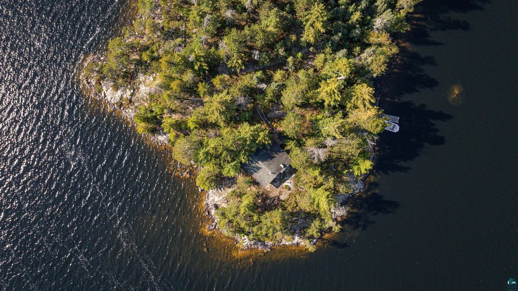 A rare point property on Burntside Lake on Blueberry Island, offering spectacular elevated views in three directions, including western sunset views, across one of northern Minnesota's most pristine lakes. Surrounded by dramatic Canadian Shield glacial rock outcroppings and native forest, this exceptional setting captures the timeless beauty of the Northwoods. The classic 1918 seasonal two bedroom log cabin exudes historic character and authentic charm. An open living and dining area invites relaxed lake living, while the cabin's close proximity to the shoreline creates the remarkable feeling of being on the water. Windows on every side provide cross breeze and soothing sounds of wind and water. A private dock extends into the clear waters of Burntside, perfect for boating, swimming and lakeside relaxation. The property retains its traditional simplicity with propane gas wall heaters, piped-gas overhead mantel lights, a range/oven, and a wood burning fireplace stove. The grey water system, lake water system, and compliant privy preserve the rustic simple island experience. This 1.95+/- acres and 944 +/- ft piece of prime lakeshore is conveniently located a short boat ride from the Van Vac public landing. This extraordinary island retreat offers both seclusion and accessibility, an increasingly rare opportunity on Burntside Lake. $529,000
