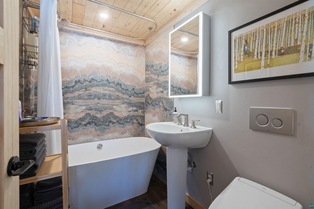 Nestled on 5 serene, wooded acres, this stunning, fully remodeled retreat offers the perfect blend of modern luxury and Northwoods charm. Ideally located near the iconic Superior Hiking Trail and just minutes from the breathtaking shoreline of Lake Superior, this property delivers privacy, recreation, and refined living in one exceptional setting. The home has been thoughtfully renovated with premium upgrades throughout, including new Duxton triple-pane windows, LP SmartSide siding, and a striking metal roof designed for beauty and durability. A newly built entryway, staircase, and expansive deck create a warm welcome and seamless connection to the surrounding forest. Inside, craftsmanship and comfort shine. Tongue-and-groove ceilings add rustic elegance, while new wood and tile flooring flow throughout the home. The custom gourmet kitchen is designed for both entertaining and everyday living, and the spa-inspired bathroom features in-floor heat and a luxurious oversized soaking tub. A high-efficiency mini-split system provides year-round comfort with modern heating and cooling. The property also includes an impressive heated 6-car garage, offering abundant space for vehicles, recreational gear, or a workshop. Adding to the property's charm is a rustic guest cabin complete with its own private deck and cozy wood-burning fireplace"”an inviting retreat for guests or a peaceful getaway just steps from the main home. Surrounded by towering trees and endless outdoor recreation, this rare North Shore sanctuary offers a unique opportunity to experience luxury living immersed in nature. Your truley will not want to miss out on this wonderful property.