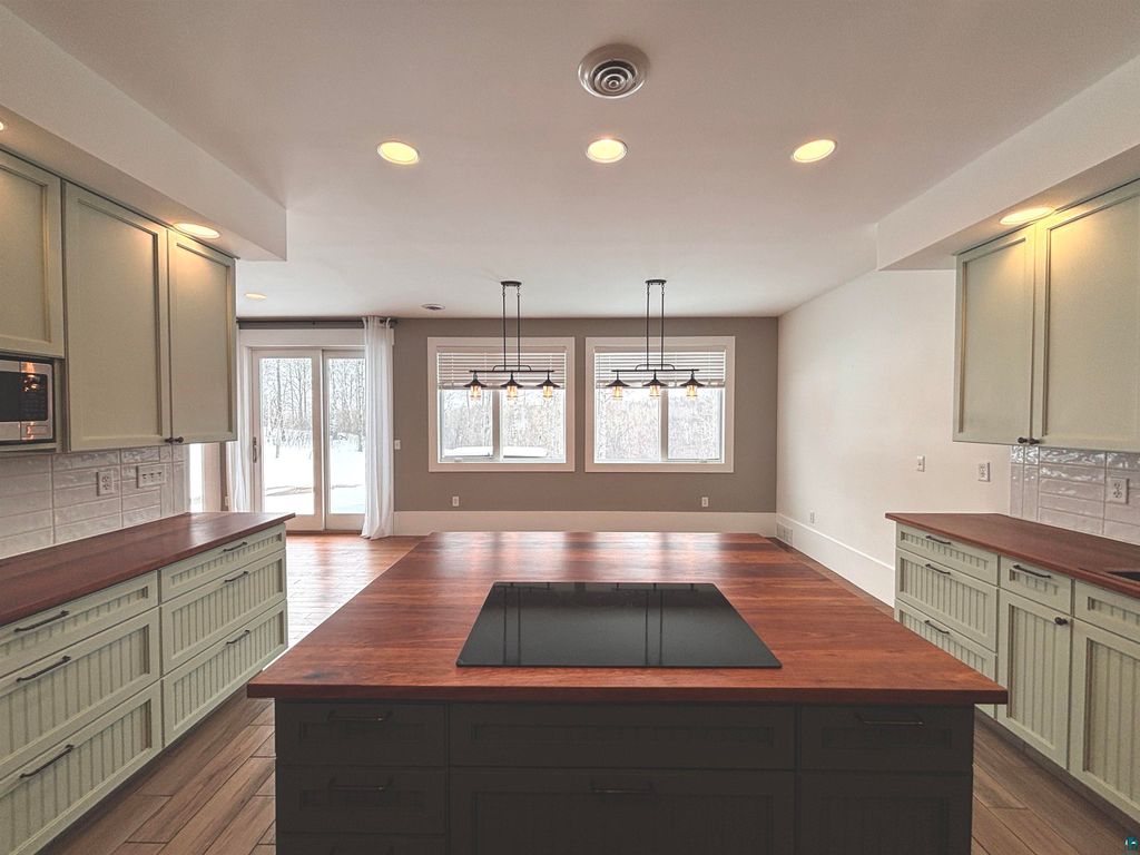 Set on a quiet dead-end street in Northridge Estates, this striking Colonial-inspired home offers over 4,200 finished sq ft on nearly an acre, bordered by 120 acres of association-owned nature preserve with miles of maintained trails and abundant wildlife. Built in 2015 with durable steel siding and classic architectural appeal. The main level features in-floor heat throughout, a spacious living room with a freestanding wood stove, formal dining area, and a beautifully designed kitchen centered around a large island with cooktop. Thoughtful details include hammered copper sinks"”both with disposals"”a separate prep sink, butcher block countertops, double wall ovens, and exceptional cabinet storage. A functional mudroom with utility sink connects to the attached heated four-stall garage with in-floor heat and professionally finished epoxy floors. Upstairs you'll find the primary bedroom with a large walk-in closet and 4 piece ensuite bath. Additionally, a secondary Ensuite bedroom with 3/4 bath and built in closet cabinetry. Three additional bedrooms, a full bath, and convenient upper-level laundry. Heated bathroom floors and a spacious landing with built-in bookshelves add comfort and character. Generous flex spaces currently used as a second floor family room and main-level den provide additional versatility and could serve as additional bedrooms if desired, allowing the home to function as a 7-bedroom property without any renovation. The third level is a walk up attic, housing additional utilities, with expansive storage and/or recreation space with climbing wall. if desired improvements of this floor are in mind, it is already roughed in for a future full bath. Off the living room are 2 sliding doors that open to a backyard patio with hot tub, perfect for relaxing in the peaceful natural setting. the home enjoys abundant southern exposure with valley views that show off the sunrise and sunset. Outside, Prairie Restoration Inc. recently enhanced the landscape with native plantings and wildflower meadows, creating a vibrant and ever-changing natural backdrop in spring and summer.