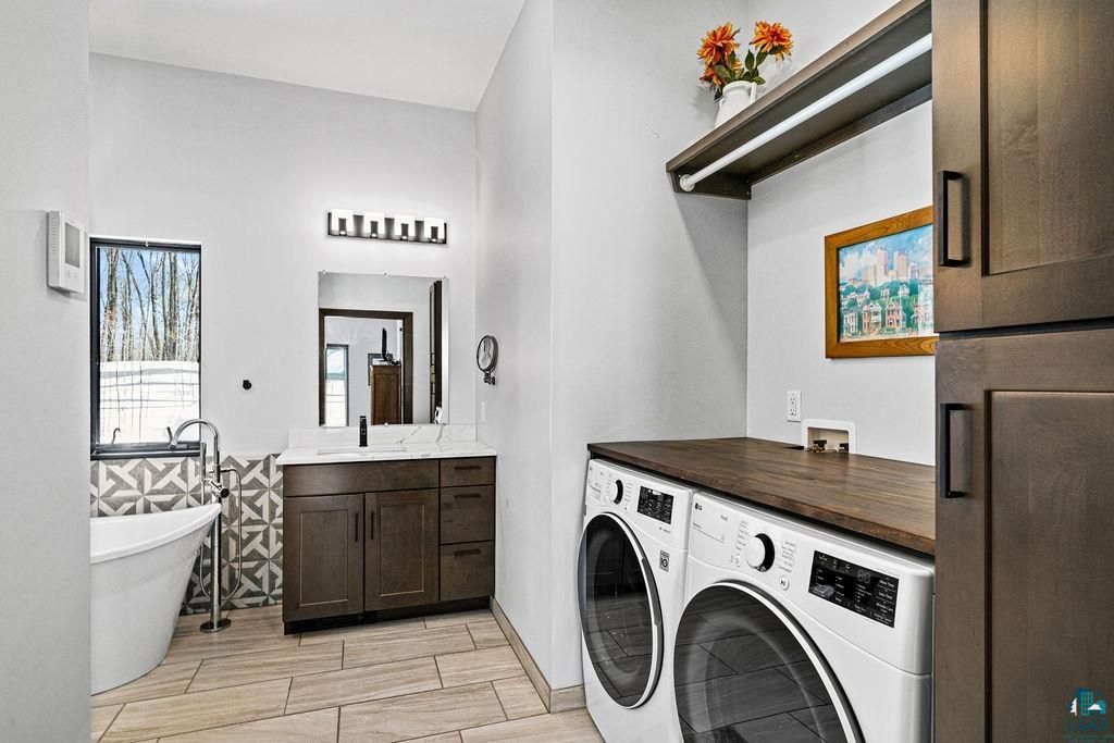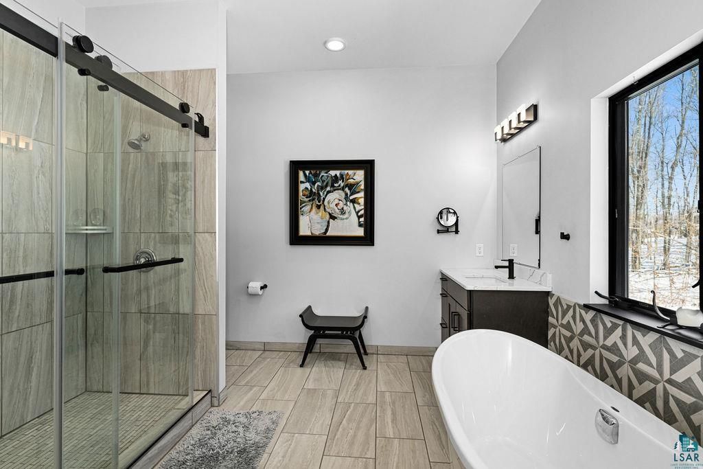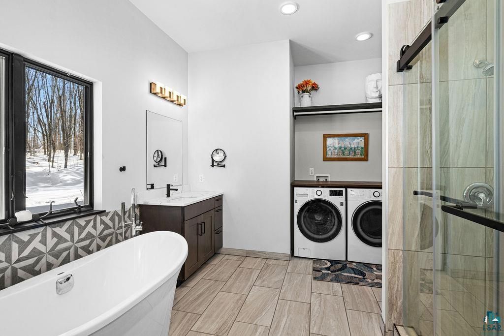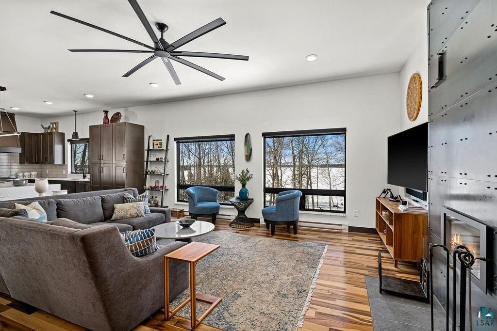 Set on over 5 private acres with 200 feet of pristine Fish Lake frontage, this exceptional 3-bedroom, 3-bath home offers a rare blend of modern design, energy efficiency, and effortless Minnesota lake living. The beautiful lot is filled with mature maple trees, creating a peaceful, private setting, and is located within the highly sought-after Hermantown School District. The open main level is filled with natural light and showcases panoramic lake views from every room. A spacious kitchen, dining, and living area create the perfect setting for entertaining or simply relaxing by the fire. The primary suite is a true retreat, featuring a walk-in closet, expansive bath with dual sinks, custom tile shower, and convenient main-level laundry. The walkout lower level includes two additional bedrooms, a full bath, and a generous family room with fireplace"”ideal for guests, gatherings, or quiet evenings at home. A second laundry area has also been thoughtfully stubbed in, offering flexibility and convenience for future use. Thoughtfully designed by its owners as their forever home, every detail reflects quality craftsmanship, comfort, and timeless style. Constructed with insulated concrete form (ICF) panels and dual-fuel heating, this home was built for both durability and energy efficiency. Zoned heating and two fireplaces provide year-round comfort, while Diamond Kote® SmartSide siding, maintenance-free decking, and solid surface countertops offer lasting beauty and low-maintenance living. Enjoy every season on Fish Lake"”boating, fishing, swimming, or simply taking in the peaceful shoreline. Raised garden beds and custom landscaping enhance the setting, bursting with color each spring. With more than 5 acres of private land, exceptional finishes, mature maple trees, and stunning lake views throughout, this remarkable property captures the essence of relaxed luxury.