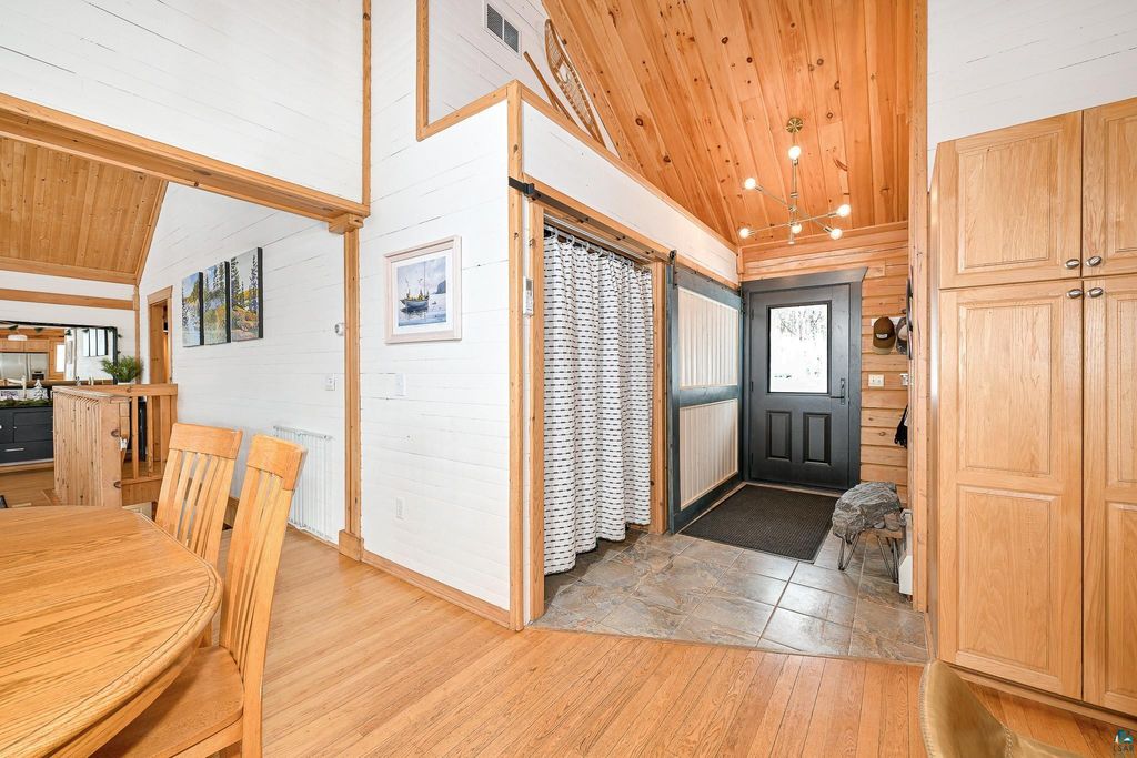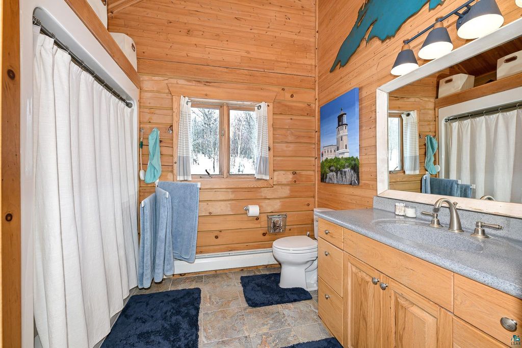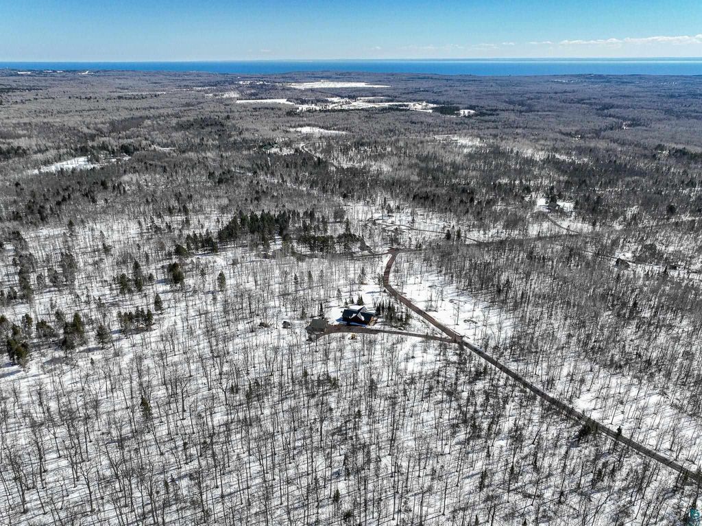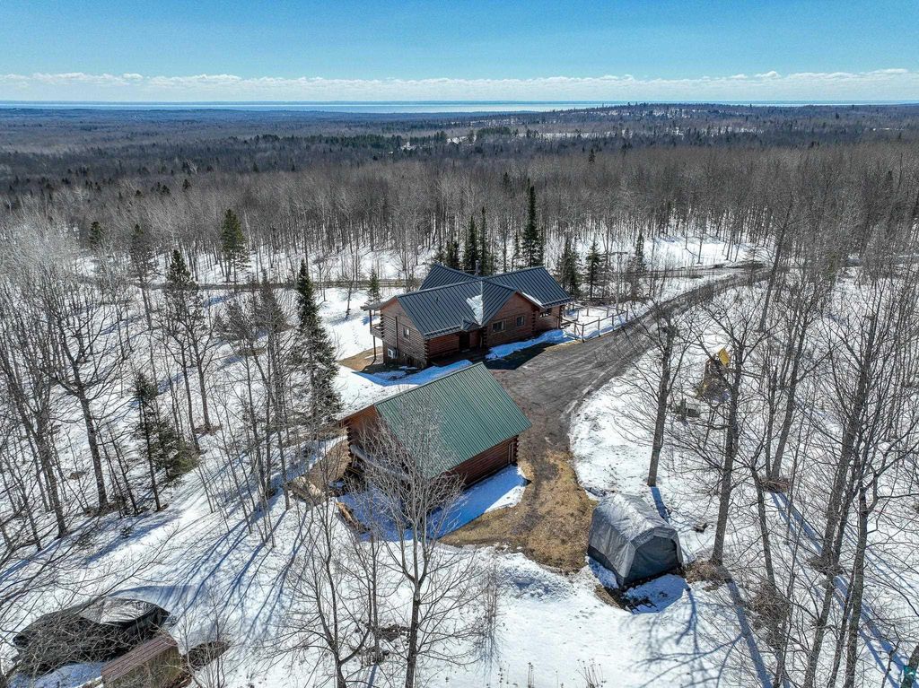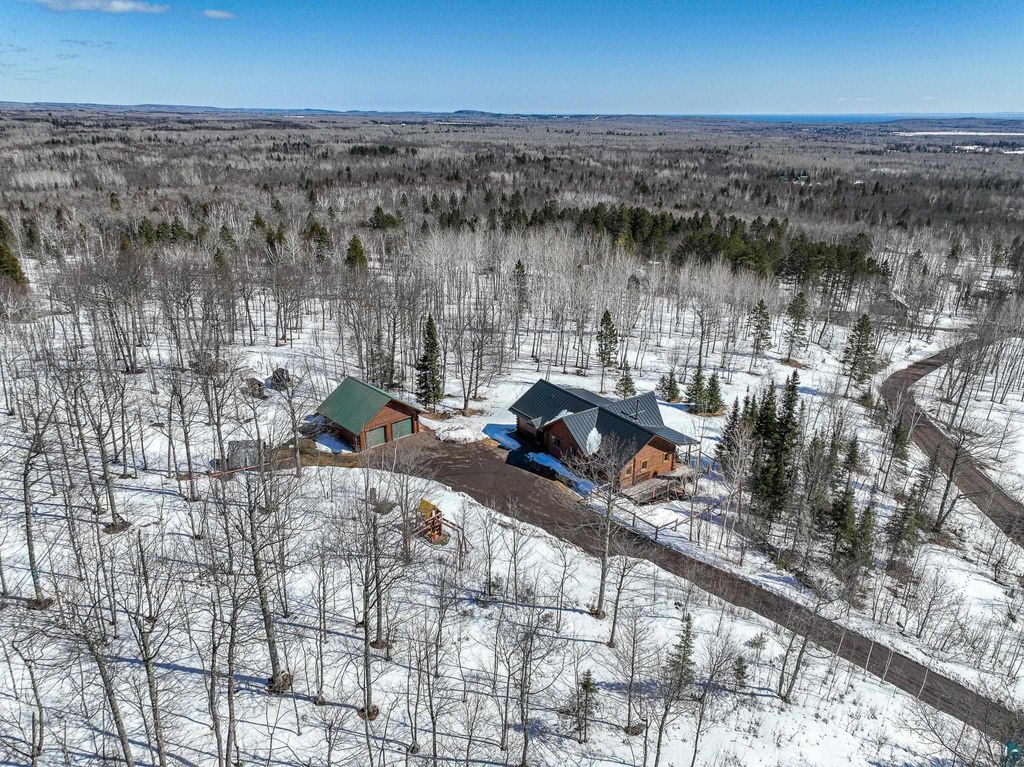 Nestled in the woods with panoramic Lake Superior and North Shore views, this stunning log home blends privacy with rustic charm. Vaulted ceilings and an open layout create a bright, inviting feel, complemented by hardwood floors, a tiled entry, and a cozy living room with a Jotul wood stove. The kitchen features hickory cabinetry and a butcher block island, opening to a dining area with access to a covered porch"”perfect for taking in the views. The main level includes a mudroom with laundry, primary bedroom, full bath, second bedroom, and a walkout office/den. The lower level offers great flexibility with an additional bedroom or office, sauna within a ¾ bath, in-floor heat, and walkout access"”plus room to expand living or recreation space. Outside, enjoy a wraparound deck, fenced dog run, and nearly 20 acres with selectively thinned trees for long-term forest health. A heated, insulated two-car garage with a semi-finished loft adds even more potential.