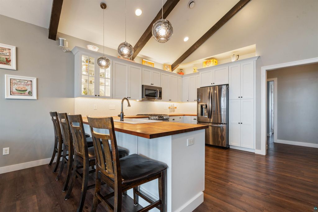 Welcome to lakeside living just minutes from Duluth on the coveted Caribou Lake! This 2017-built, main-floor-living home pairs chic design with modern function. The open-concept layout features vaulted ceilings, abundant natural light, a cozy fireplace, and a stylish kitchen with custom cabinetry and stainless-steel appliances. The primary suite offers a walk-in closet and ¾ bath with a tiled shower, while two additional bedrooms and a full bath sit on the opposite wing for ideal separation. A sliding door leads to a peaceful patio overlooking the lake. Outside, intentional Miller Creek landscaping enhances property functionality and every view. The 30×50 garage offers tall ceilings plus plenty of space for storage! Enjoy fishing, boating, and year-round recreation on this accessible Northland lake!