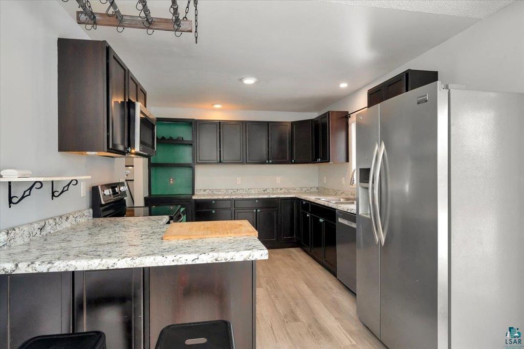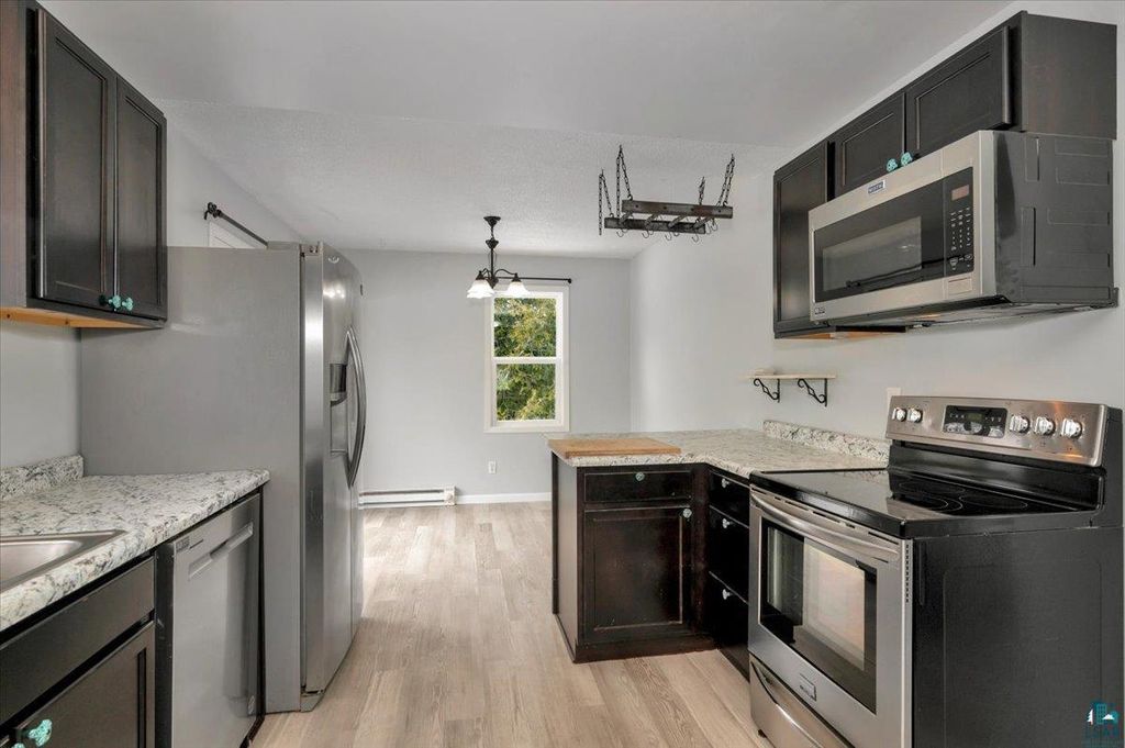 Are you looking for some acreage, but not too far from town? Your search is over!!! This recently updated, 3 bedroom, 2 bath split entry has everything you've been looking for in your next home. Upon entering, you will be warmly greeted by a HUGE foyer are that can accommodate benches, cubbies and numerous friends or family for those "Minnesota Nice" style good-byes. The upper level boasts a generous living room featuring new paint, new laminate flooring and trim. The eat-in kitchen is well-equipped to handle any meal prep and has direct access to the south-facing deck for summer entertaining or sun bathing. This level has two of the three bedrooms, with the primary being located away from the other for privacy and features a very unique "industrial farmhouse" style 3/4 bathroom. Right next to the second bedroom you will find a flex room to use as a nursery, office, library or music room and has an attached full bath. The lower level rec room continues the "farmhouse" feel and offers a rustic laminate floor, corrugated steel wall accents, decorative fireplace and walk-in storage closet. The third Bedroom is bright and cheery! A storage room, laundry and den/office round out this level and allows enough space for everyone to enjoy! Let's add a newer septic (2018), LP siding, asphalt roof, over-sized two plus car detached garage, frog pond and newer windows. All of this located on 10 acres and just minutes to Two Harbors or Duluth! What are you waiting for---set up your private tour today!!