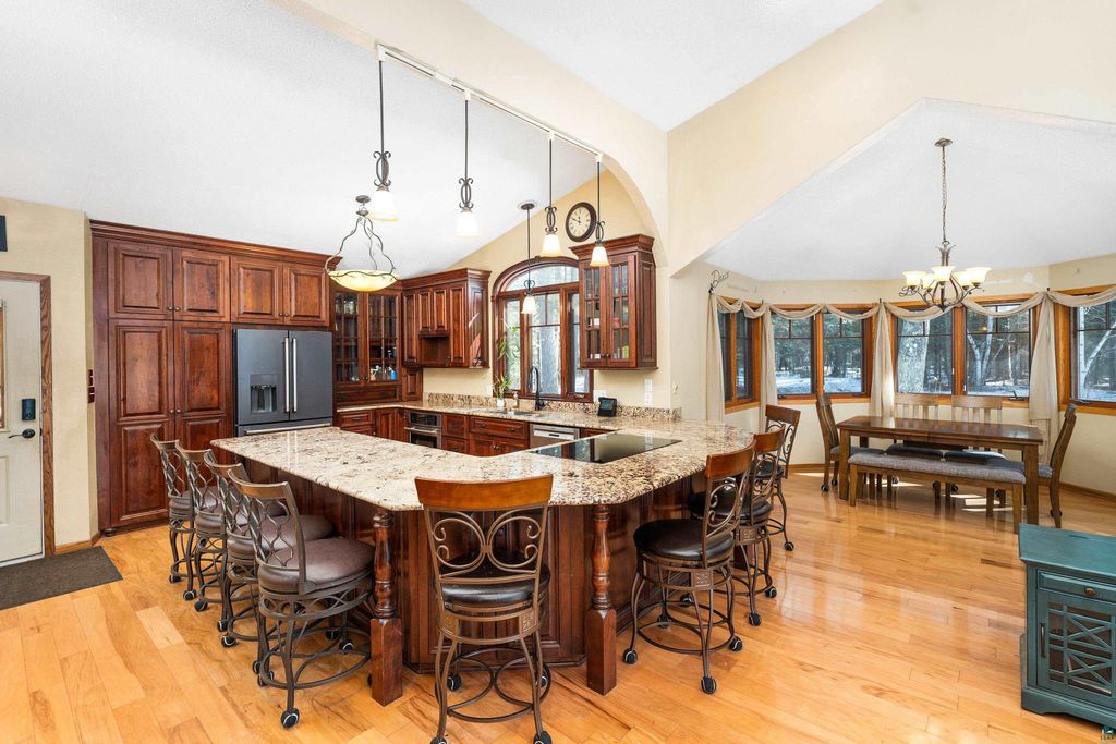 Nestled on over 3 private acres with over 300 feet of frontage on Island Lake, this exceptional 4 bedroom, 4 bath home offers the perfect blend of space, privacy, and Northwoods luxury. Surrounded by mature trees, the setting is peaceful and secluded with stunning lake views and direct access to the water. Inside, the spacious great room showcases hardwood floors and an open-concept design ideal for both everyday living and entertaining. The kitchen features granite countertops, abundant cabinetry, and a layout that flows seamlessly into the main living space. The walk-out lower level is designed for entertaining, complete with a large recreation area and custom bar"”perfect for hosting year-round. Car enthusiasts and hobbyists will appreciate the impressive 7+ garage spaces, including a detached garage and an additional pole building offering ample room for vehicles, toys, and storage. Whether you're searching for a full-time residence or a private lake retreat, this Island Lake property delivers unmatched space, functionality, and a serene, wooded setting.