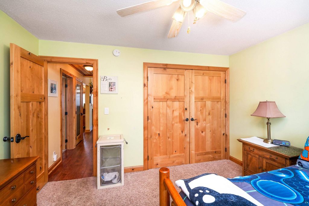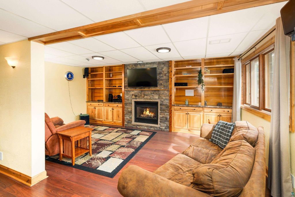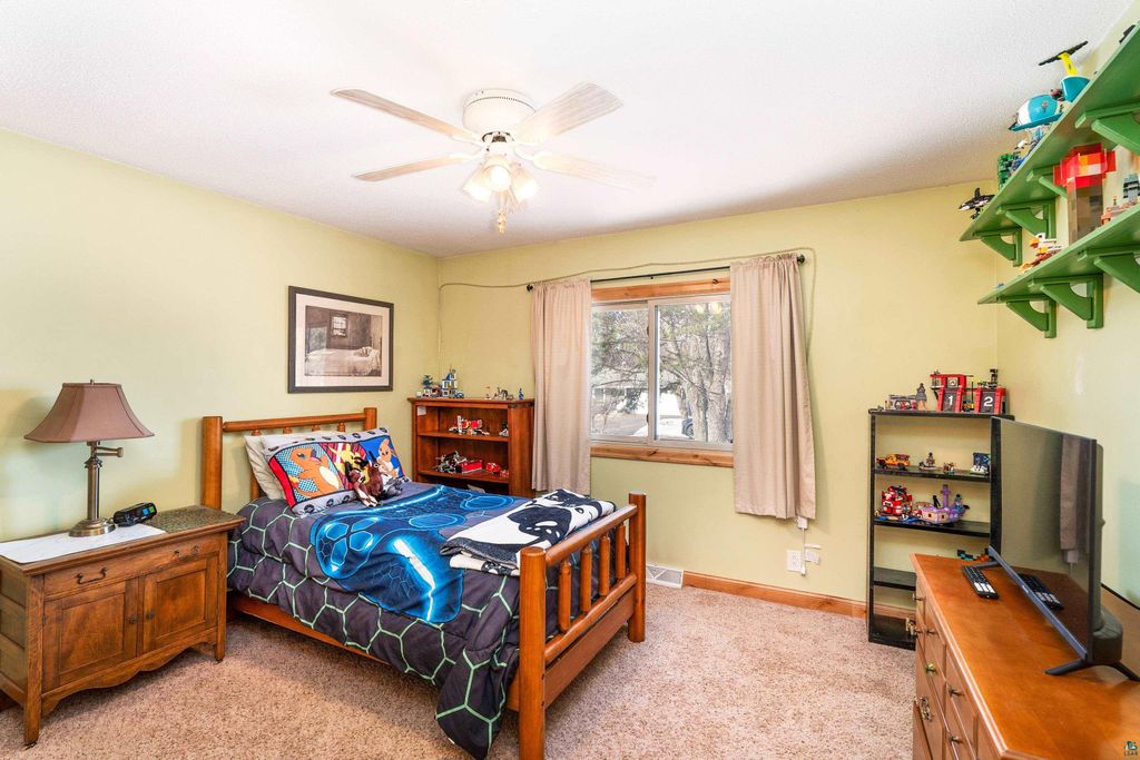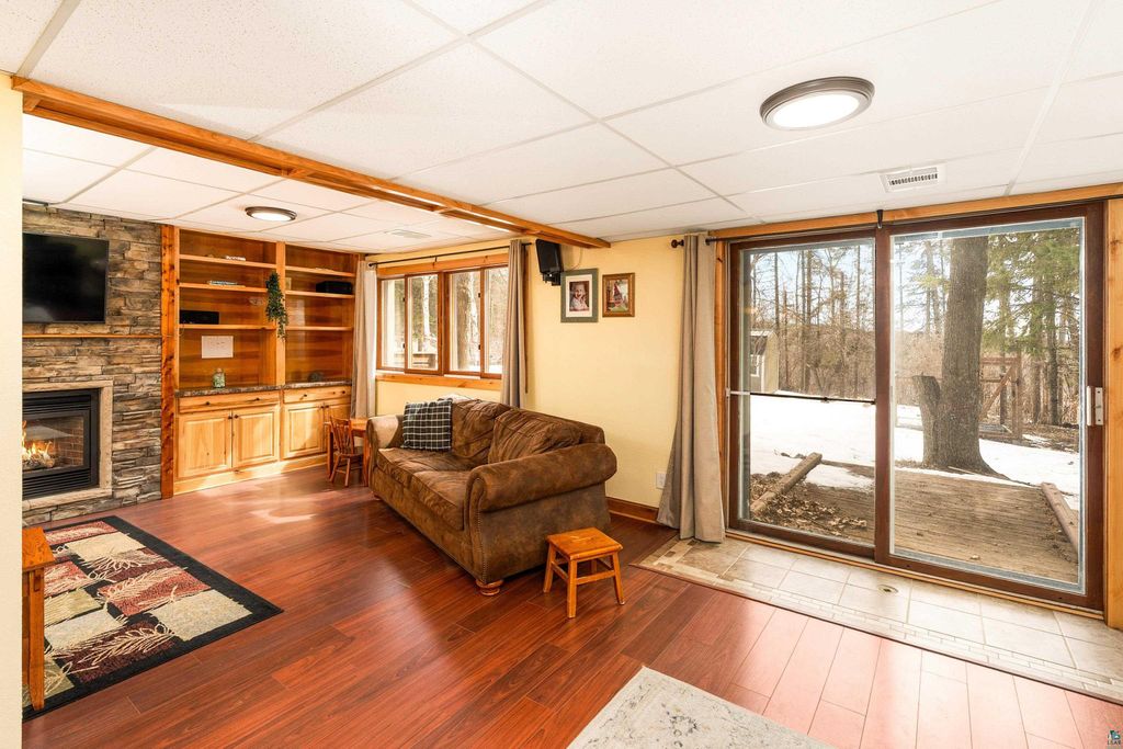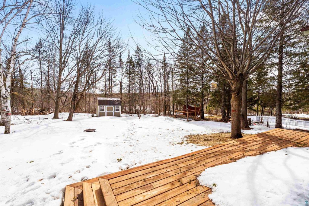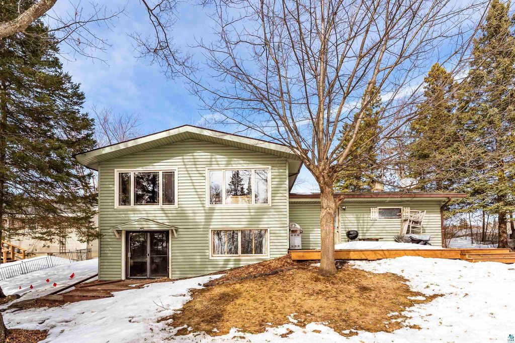 Move-in ready and beautifully updated, this home offers a rare setting backing directly up to Hartley Park"”bringing nature, privacy, and year-round recreation right to your doorstep. Step inside to a tiled entry with access to the attached heated and insulated garage, plus a generous coat closet. The upper level features a bright, open floor plan with sweeping views of Hartley Park. Vaulted ceilings with tongue-and-groove cedar create a warm, inviting atmosphere, while the updated kitchen shines with stone countertops and a spacious pantry. The main level includes two large bedrooms and an updated full bath. The walkout lower level expands your living space with a cozy family room featuring built-in bookcases and a gas fireplace with striking Trilite stone surround. The rec room is ideal for hosting, complete with a wet bar with hickory cabinets and patio door leading to the private, wooded backyard. You'll also find a spacious third bedroom with abundant closet space, a newer ¾ tiled bath, and a finished laundry room. Interior updates include fresh paint, newer sheetrock, updated flooring, modern light fixtures, and Knotty Alder doors throughout. Outside, the home continues to impress with Norandex Polar Wall foam-backed siding for added efficiency, wrapped windows, a newer asphalt driveway, raised garden beds, a large deck, and a storage shed. A rare opportunity to own an updated home in a premier location with direct access to Hartley Park"”don't miss this one.