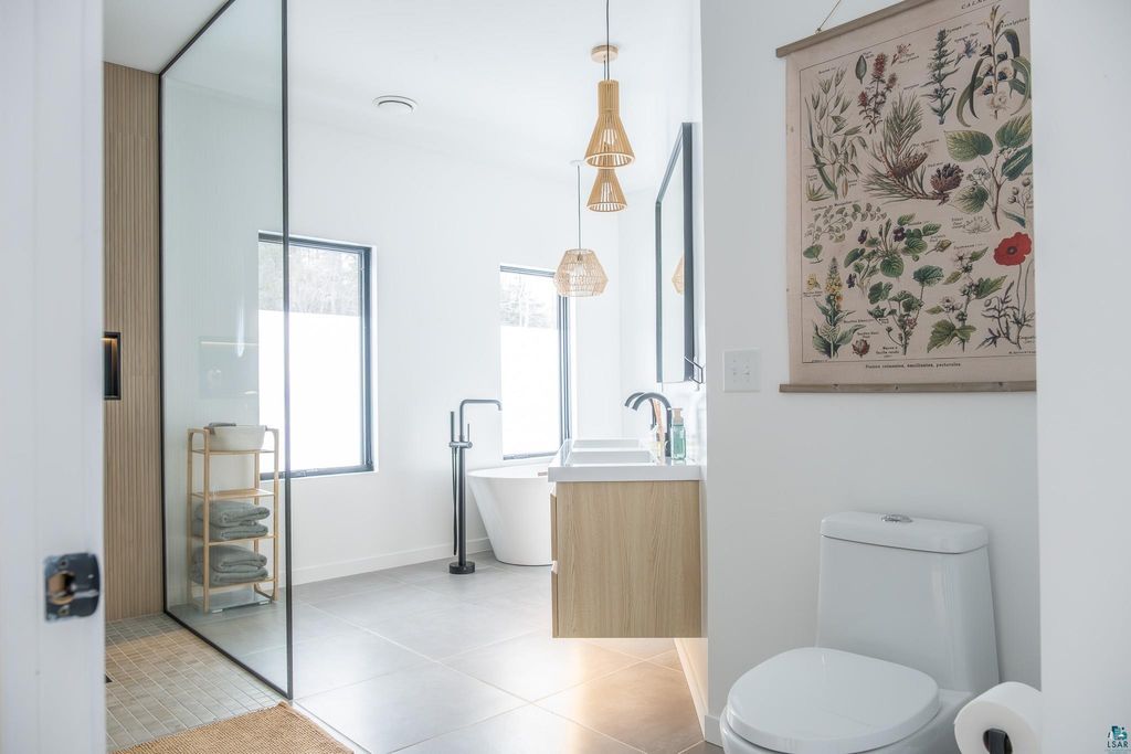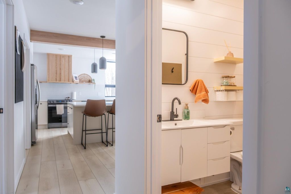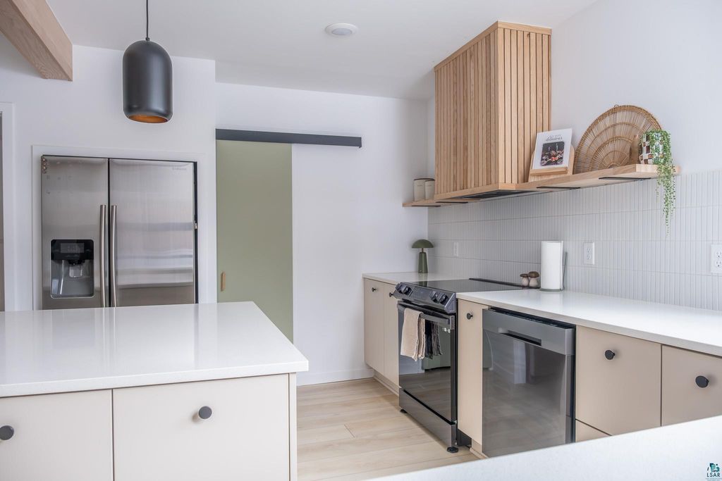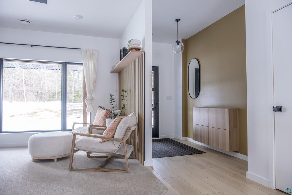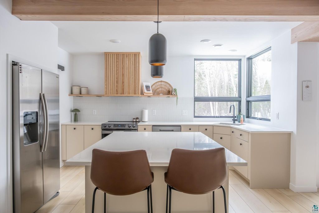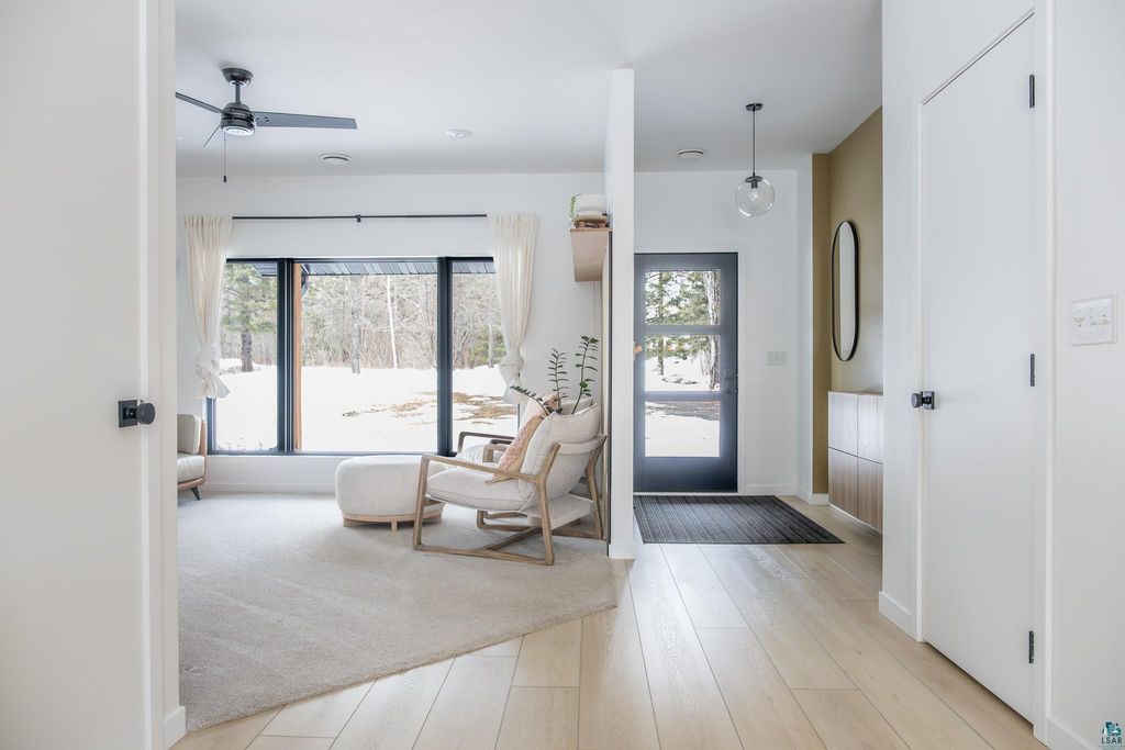 Beautifully maintained one-level home minutes from Duluth. Thoughtfully expanded and remodeled. This property offers the perfect blend of modern design and easy, turnkey living"”with nearly everything updated in the last three years, including windows, siding, roofing, and most interior finishes. The bright, open-concept layout features clean lines, warm wood accents, and abundant natural light. The modern kitchen offers stylish cabinetry, updated finishes, and a large island ideal for everyday living and entertaining. With 3 bedrooms plus a dedicated office and additional flex/playroom, there's space to fit a variety of needs"”all conveniently on one level. Both bathrooms have been tastefully updated, including a spacious primary bath with soaking tub and walk-in shower. Enjoy the 16x26 composite deck overlooking your backyard, complete with four apple trees and room to roam. A heated detached garage and circular driveway adds functionality and convenience. Well cared for, extensively updated, and truly move-in ready. You don't want to miss this!
