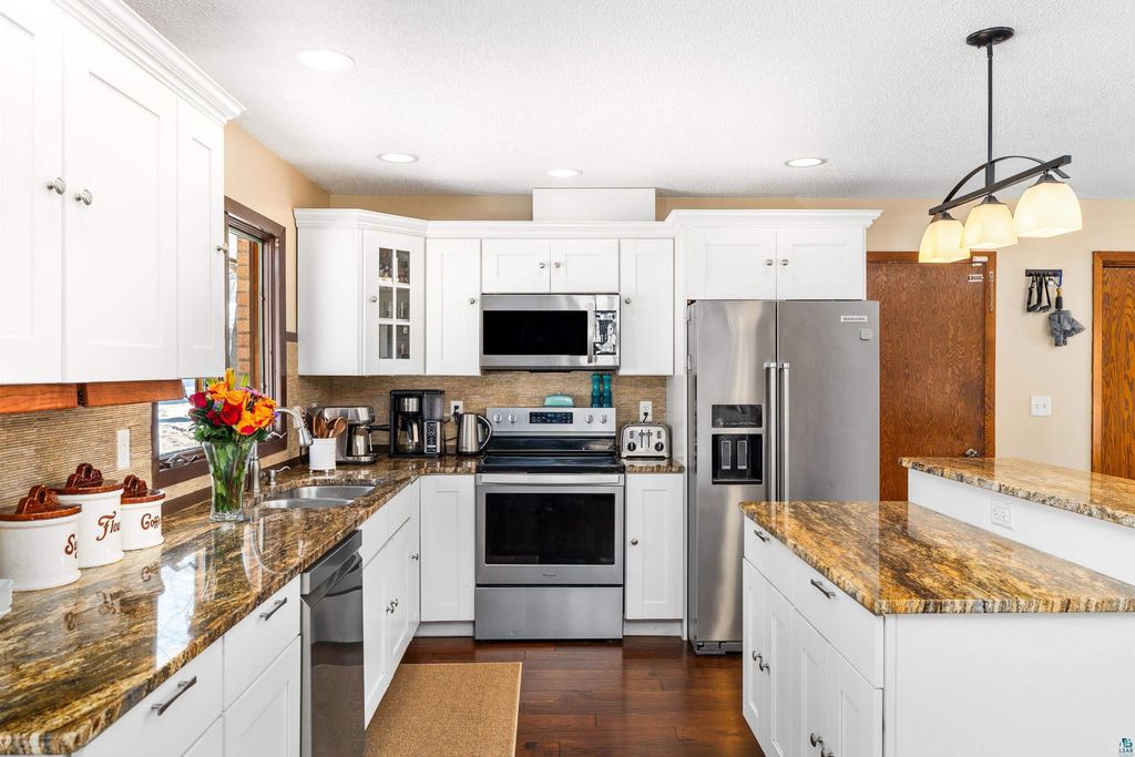 Stunning ranch-style brick home located in the heart of Duluth, just minutes from Hartley Nature Center. This solid 3+ bedroom, 3-bathroom home offers a large kitchen with a breakfast bar that opens to a formal dining room featuring a see-through gas fireplace shared with a spacious living room. The inviting open floor plan is perfect for entertaining. Down the hall you will find a full bathroom and three bedrooms, including a primary with a 3/4 en suite bath. The lower level offers an oversized family room with a wood-burning fireplace, a walkout to the backyard, another 3/4 bathroom, and an additional flex space perfect for a home office, along with laundry and ample storage. Completing this home is an attached two-car garage, a deck, and a manicured lot. Ideally situated near shopping, universities, downtown, and nature "” this one is not to be missed!