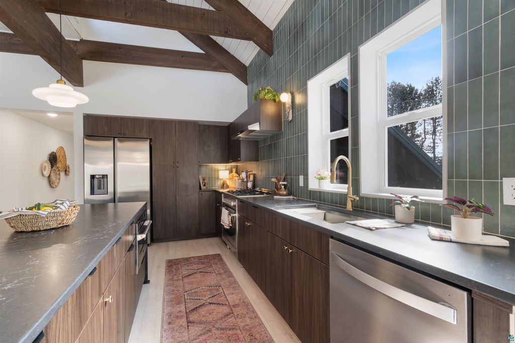 This mid-century inspired home has been updated from top to bottom, featuring a brand-new two-car garage and a massive 40x88ft 10-car pole barn with 240V power, perfect for hobbyists, contractors, or extra storage. Inside, you'll find a completely redesigned kitchen with locally fabricated quartz countertops with a waterfall-edge island, brand new appliances, new cabinets, and custom full-wall tile. The home offers all new flooring, 4 new bathrooms, and a spacious main-floor primary suite with a walk-in closet. There is main-floor laundry, plus an additional laundry area in the basement. The lower level has multiple large living areas including a wood-burning fireplace. Major upgrades include new windows and doors, new siding, all new plumbing, a new well, new septic system, brand-new wraparound red cedar deck, and nearly all new wiring. The metal roof was done within the last couple of years. This is a rare opportunity to own a fully renovated mid-century home with modern systems, high-end finishes, and exceptional outbuilding space all on 10 acres of land. Work done by licensed contractor with necessary permits and inspections. Owner is an agent.