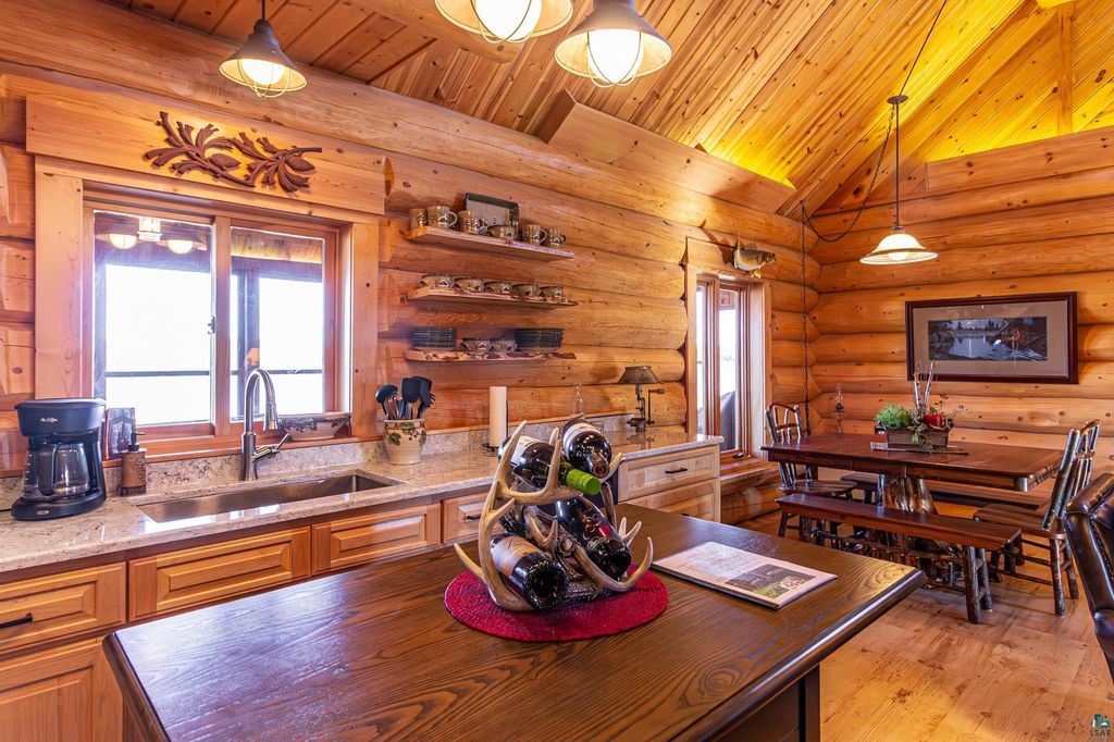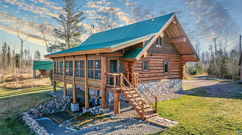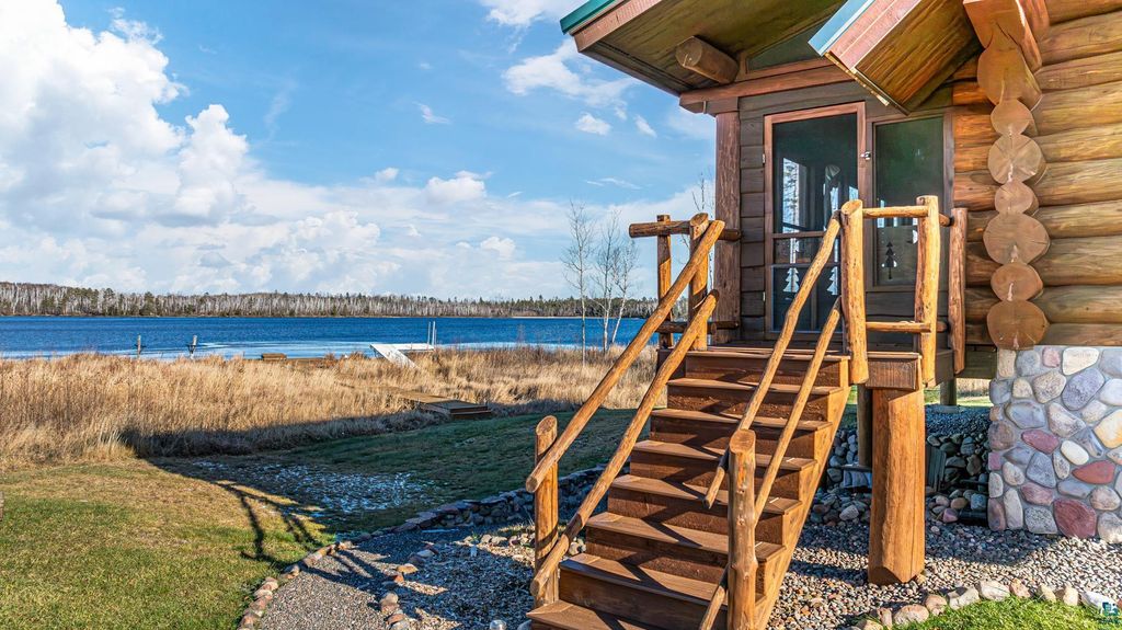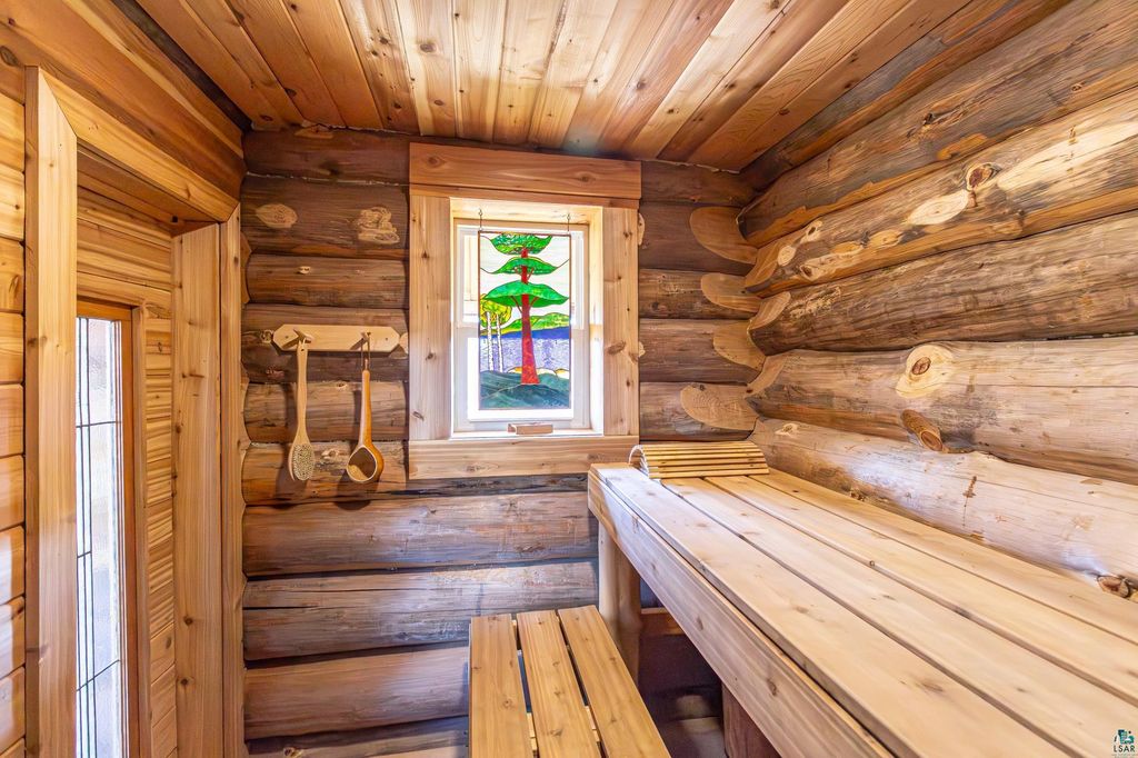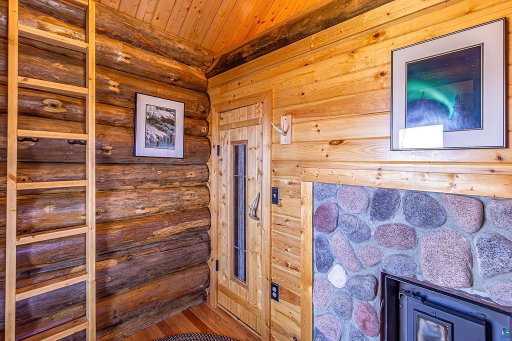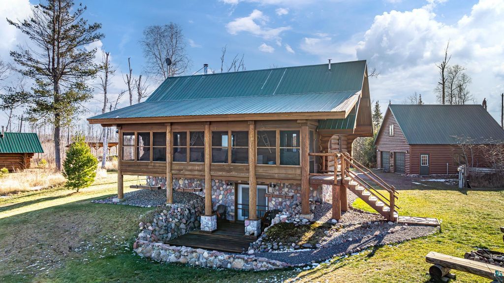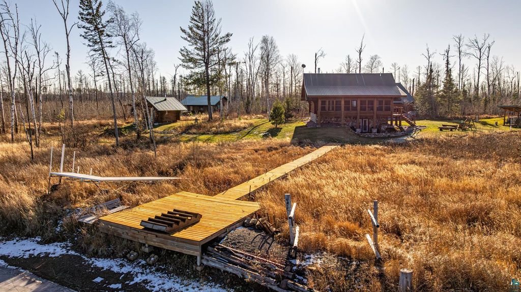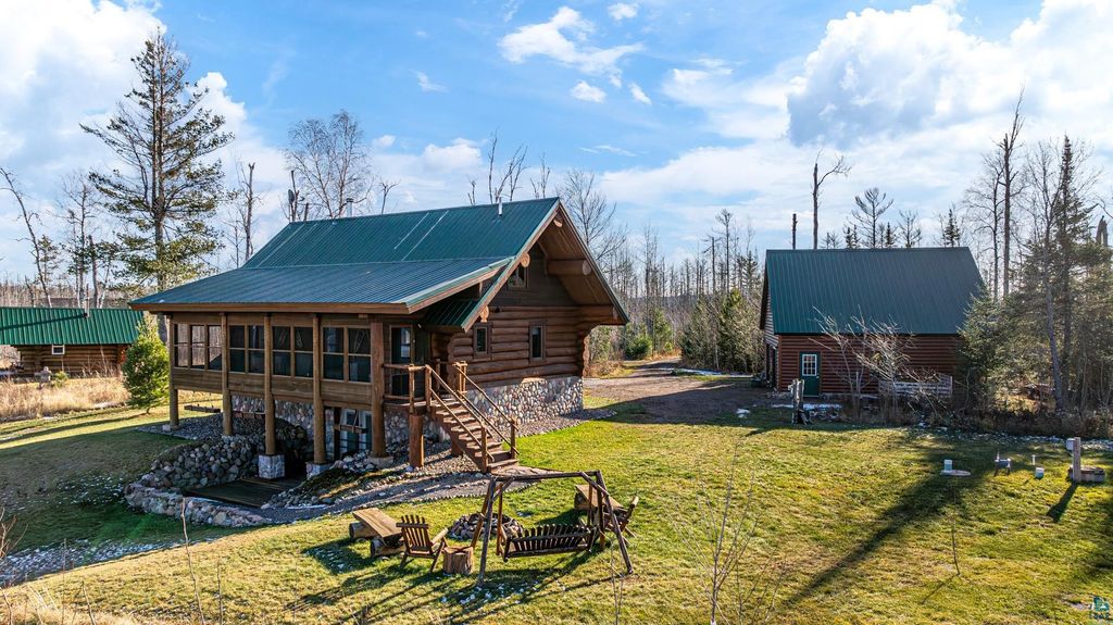 Set within the pristine beauty of the Superior National Forest, this extraordinary hand-scribed white spruce year round log home offers a rare combination of refined craftsmanship and secluded luxury. Encompassing 2.6 private acres and 280 feet of level shoreline on North McDougal Lake, this property delivers an unmatched waterfront lifestyle on a quiet, low-traffic chain of lakes known for exceptional fishing and serenity. Designed with both elegance and comfort in mind, the main level showcases a seamless open concept layout where the living room, kitchen and dining spaces are unified by soaring log construction and natural textures. Expansive windows invite the outdoors in, creating a warm yet sophisticated atmosphere ideal for both intimate gatherings and upscale entertaining. It features a main-level primary suite and bath. The upper-level loft offers a refined, airy retreat overlooking the great room-perfect for hosting guests while maintaining a sense of openness and architectural drama. Just off the kitchen, a beautifully appointed 3 season porch captures breathtaking sunset views, offers a tranquil setting for evening relaxation. The fully finished walkout lower level extends the home's livability with a comfortable family room, custom Murphy bed accommodations, a striking one-of-a-kind wilderness mural, and additional bath, laundry, and storage spaces. Step through french doors to the gorgeous custom fieldstone foundation and accent walls and pillars leading to the 60 foot boardwalk to the lakes edge for effortless waterfront access. Enjoy a true north woods experience in the handcrafted 10' x 14' log sauna, complete with a premium Kuma wood-burning stove and 6' x 8' changing room, located an easy distance to the lake. Newer 31' x 29' 3 stall storage building with a both double & single garage doors and a 6' x 31' covered porch. The oversized detached garage with an expansive loft provides versatile space currently a workshop; possibly future studio or storage. An added 8' x 24' sawmill offers a distinctive opportunity for custom woodworking or estate self-sufficiency. This is more than a home - it is a private legacy property offering tranquility, prestige, and an immersive connection to Ely and the North Shore.