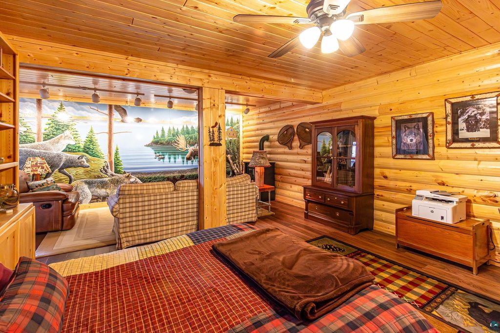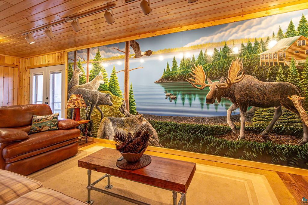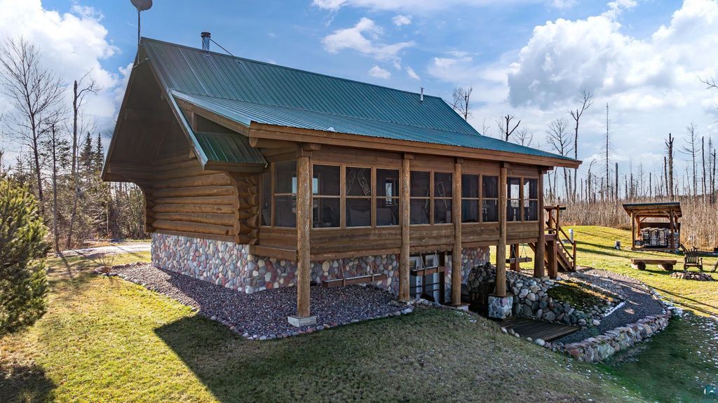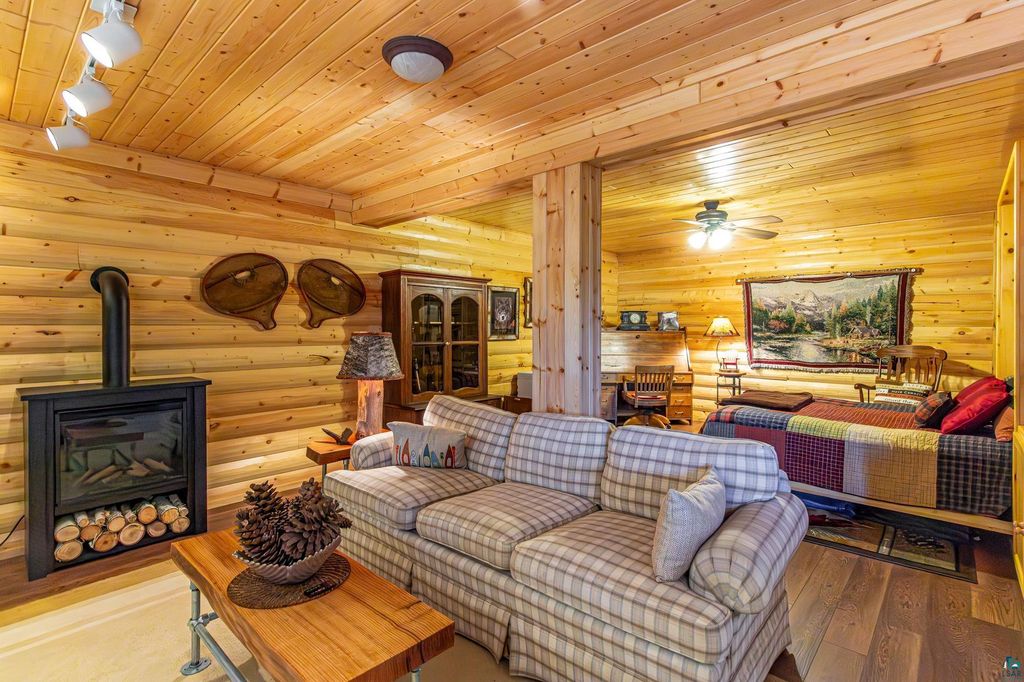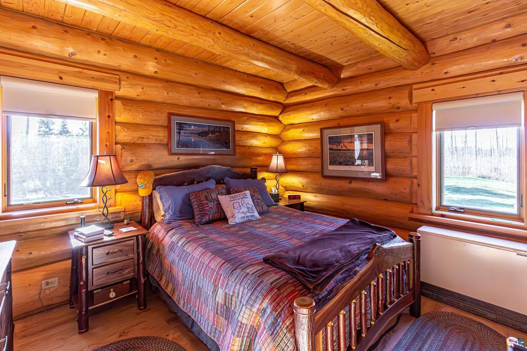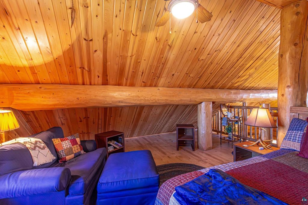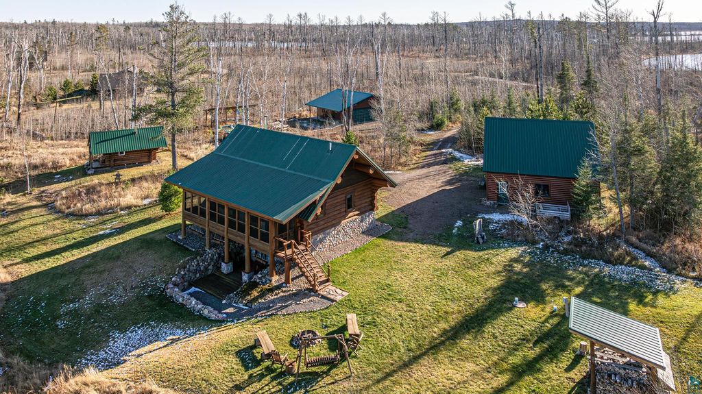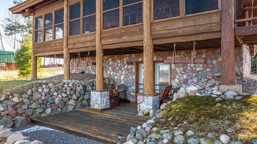 Set within the pristine beauty of the Superior National Forest, this extraordinary hand-scribed white spruce year round log home offers a rare combination of refined craftsmanship and secluded luxury. Encompassing 2.6 private acres and 280 feet of level shoreline on North McDougal Lake, this property delivers an unmatched waterfront lifestyle on a quiet, low-traffic chain of lakes known for exceptional fishing and serenity. Designed with both elegance and comfort in mind, the main level showcases a seamless open concept layout where the living room, kitchen and dining spaces are unified by soaring log construction and natural textures. Expansive windows invite the outdoors in, creating a warm yet sophisticated atmosphere ideal for both intimate gatherings and upscale entertaining. It features a main-level primary suite and bath. The upper-level loft offers a refined, airy retreat overlooking the great room-perfect for hosting guests while maintaining a sense of openness and architectural drama. Just off the kitchen, a beautifully appointed 3 season porch captures breathtaking sunset views, offers a tranquil setting for evening relaxation. The fully finished walkout lower level extends the home's livability with a comfortable family room, custom Murphy bed accommodations, a striking one-of-a-kind wilderness mural, and additional bath, laundry, and storage spaces. Step through french doors to the gorgeous custom fieldstone foundation and accent walls and pillars leading to the 60 foot boardwalk to the lakes edge for effortless waterfront access. Enjoy a true north woods experience in the handcrafted 10' x 14' log sauna, complete with a premium Kuma wood-burning stove and 6' x 8' changing room, located an easy distance to the lake. Newer 31' x 29' 3 stall storage building with a both double & single garage doors and a 6' x 31' covered porch. The oversized detached garage with an expansive loft provides versatile space currently a workshop; possibly future studio or storage. An added 8' x 24' sawmill offers a distinctive opportunity for custom woodworking or estate self-sufficiency. This is more than a home - it is a private legacy property offering tranquility, prestige, and an immersive connection to Ely and the North Shore.