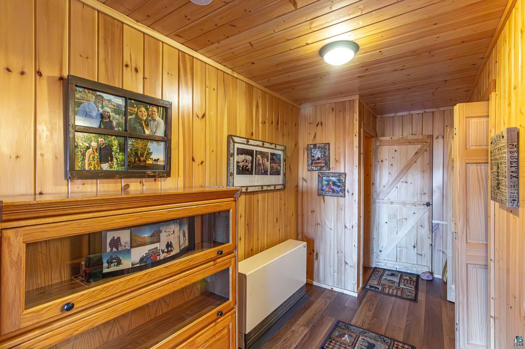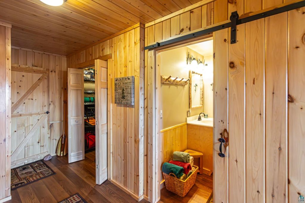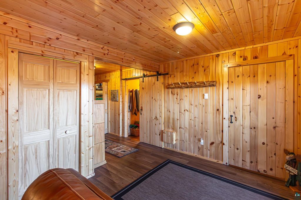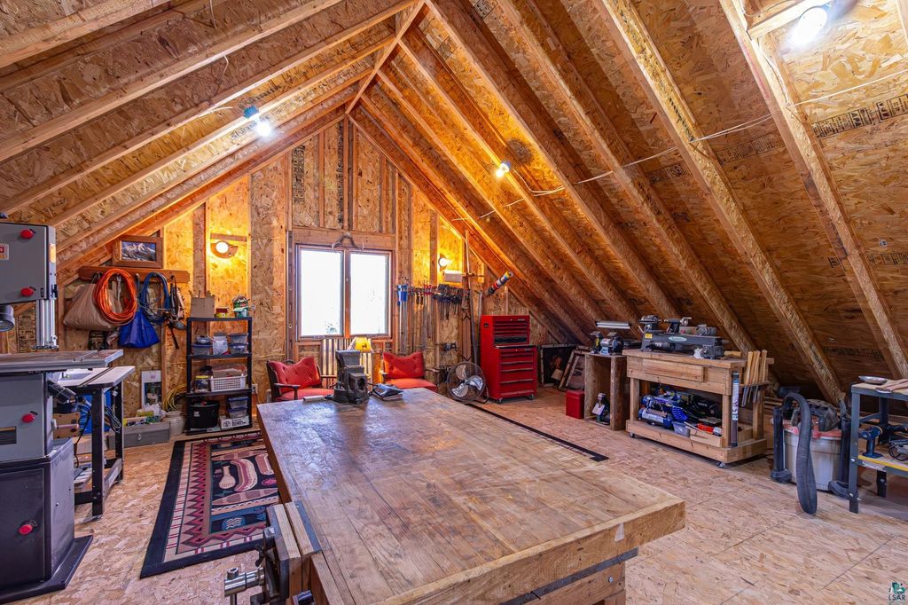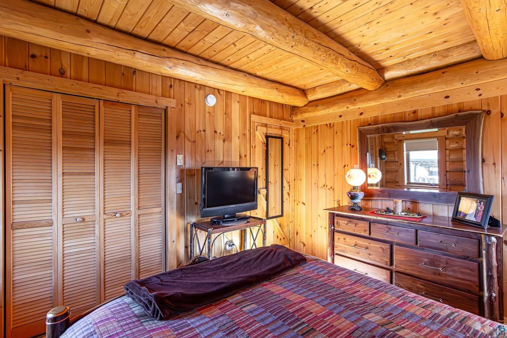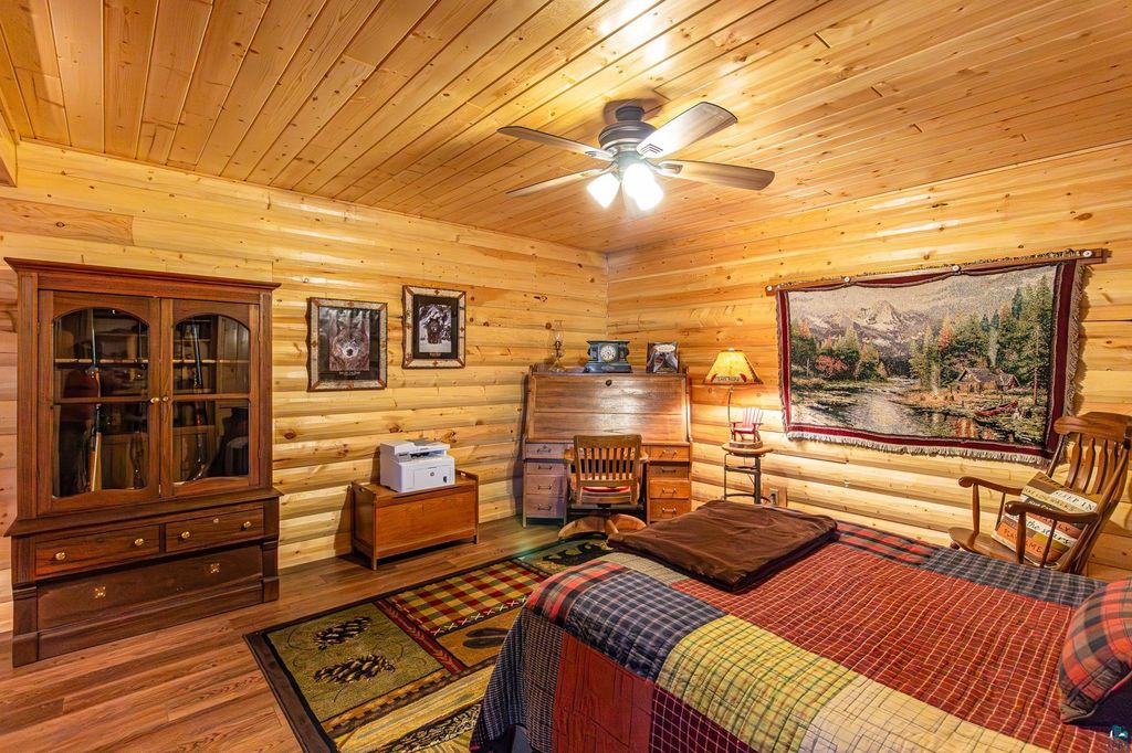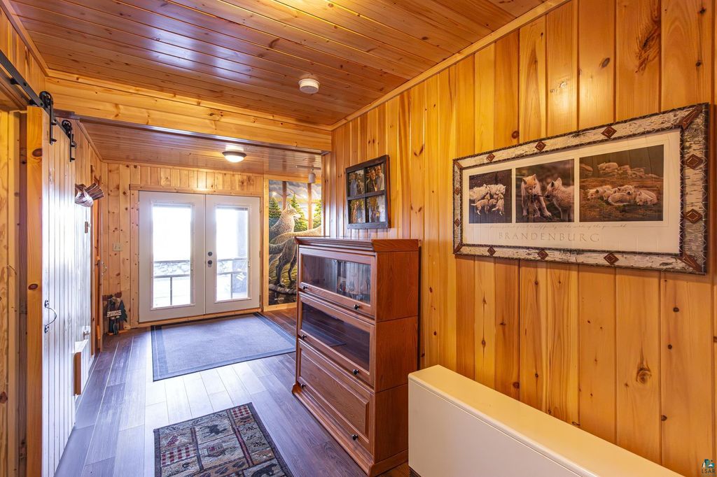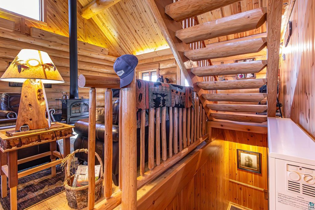 Set within the pristine beauty of the Superior National Forest, this extraordinary hand-scribed white spruce year round log home offers a rare combination of refined craftsmanship and secluded luxury. Encompassing 2.6 private acres and 280 feet of level shoreline on North McDougal Lake, this property delivers an unmatched waterfront lifestyle on a quiet, low-traffic chain of lakes known for exceptional fishing and serenity. Designed with both elegance and comfort in mind, the main level showcases a seamless open concept layout where the living room, kitchen and dining spaces are unified by soaring log construction and natural textures. Expansive windows invite the outdoors in, creating a warm yet sophisticated atmosphere ideal for both intimate gatherings and upscale entertaining. It features a main-level primary suite and bath. The upper-level loft offers a refined, airy retreat overlooking the great room-perfect for hosting guests while maintaining a sense of openness and architectural drama. Just off the kitchen, a beautifully appointed 3 season porch captures breathtaking sunset views, offers a tranquil setting for evening relaxation. The fully finished walkout lower level extends the home's livability with a comfortable family room, custom Murphy bed accommodations, a striking one-of-a-kind wilderness mural, and additional bath, laundry, and storage spaces. Step through french doors to the gorgeous custom fieldstone foundation and accent walls and pillars leading to the 60 foot boardwalk to the lakes edge for effortless waterfront access. Enjoy a true north woods experience in the handcrafted 10' x 14' log sauna, complete with a premium Kuma wood-burning stove and 6' x 8' changing room, located an easy distance to the lake. Newer 31' x 29' 3 stall storage building with a both double & single garage doors and a 6' x 31' covered porch. The oversized detached garage with an expansive loft provides versatile space currently a workshop; possibly future studio or storage. An added 8' x 24' sawmill offers a distinctive opportunity for custom woodworking or estate self-sufficiency. This is more than a home - it is a private legacy property offering tranquility, prestige, and an immersive connection to Ely and the North Shore.