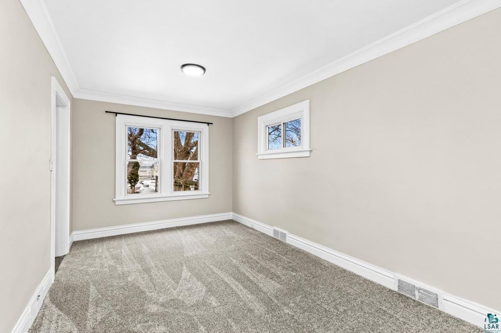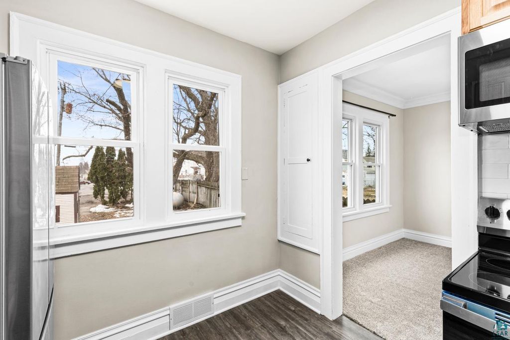 Move right into this beautifully updated home located in the desirable Denfeld neighborhood! Featuring numerous recent upgrades, this property offers comfort, style, and convenience all in one. The brand-new kitchen is a true highlight, showcasing hickory cabinets, granite countertops, brand new appliances and luxury vinyl tile flooring that flows seamlessly into the entryway. The main level also features brand-new carpeting in the living and dining rooms, creating a warm and inviting space. Upstairs, you'll find two comfortably sized bedrooms accenting the gorgeous hardwood flooring, a dedicated office, and a fully renovated three-quarter bathroom with modern finishes and luxury vinyl tile flooring. The lower level includes a third bedroom with legal egress, a laundry area, and a brand-new gas furnace, adding both functionality and peace of mind. Additional updates include a roof that's only five months old and new 1/4 bath. The home's exterior features low-maintenance vinyl siding and vinyl windows, along with off-street parking for two vehicles. The porch is primed and ready for your finishing touch. Conveniently located near hiking and biking trails, the Craft District, and Denfeld High School, this home offers both lifestyle and location. Truly move-in ready, don't miss this opportunity!