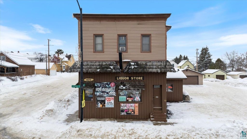Few properties can claim both a century of history and a front-row seat to everything that makes Ely one of Minnesota's most beloved destinations. 401 E Sheridan Street is one of them. Built in 1913 and anchored in Ely's C-1 commercial corridor, this freestanding mixed-use building delivers the kind of bones that developers and entrepreneurs dream about "” generous square footage, a flexible footprint, and a location that puts you squarely in the flow of year-round traffic. The main level spans a fully operational retail floor, currently running as a liquor store, with 1,666 SF of basement storage below. Upstairs, a spacious four-bedroom, two-bathroom apartment offers a private deck and detached garage "” ideal for an owner-operator, long-term tenant, or short-term rental income stream. Total building size comes in at 6,486 SF across three levels, giving a new owner plenty of room to work with. Ely's appeal is no secret. As the gateway to the Boundary Waters Canoe Area Wilderness, and built on a deeply rooted sense of community "” this is a town with a loyal local base and a steady stream of visitors who keep coming back. With historic charm, a prime location, and real redevelopment potential, this property is an exceptional opportunity for an investor or entrepreneur ready to plant roots in a beloved Northwoods community.
