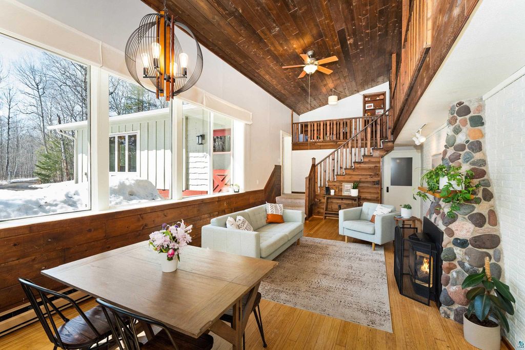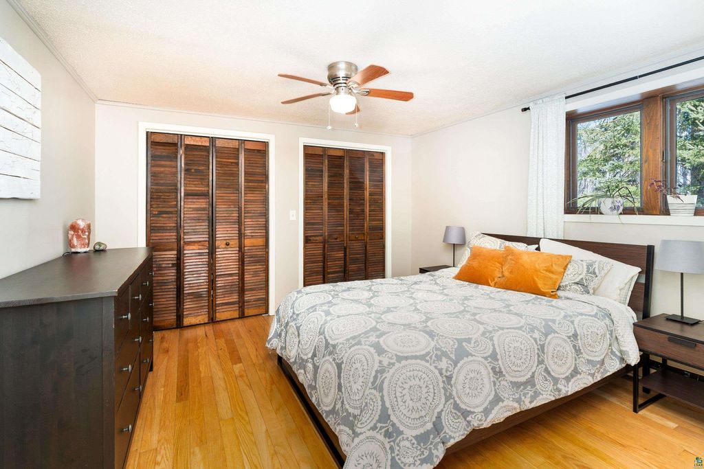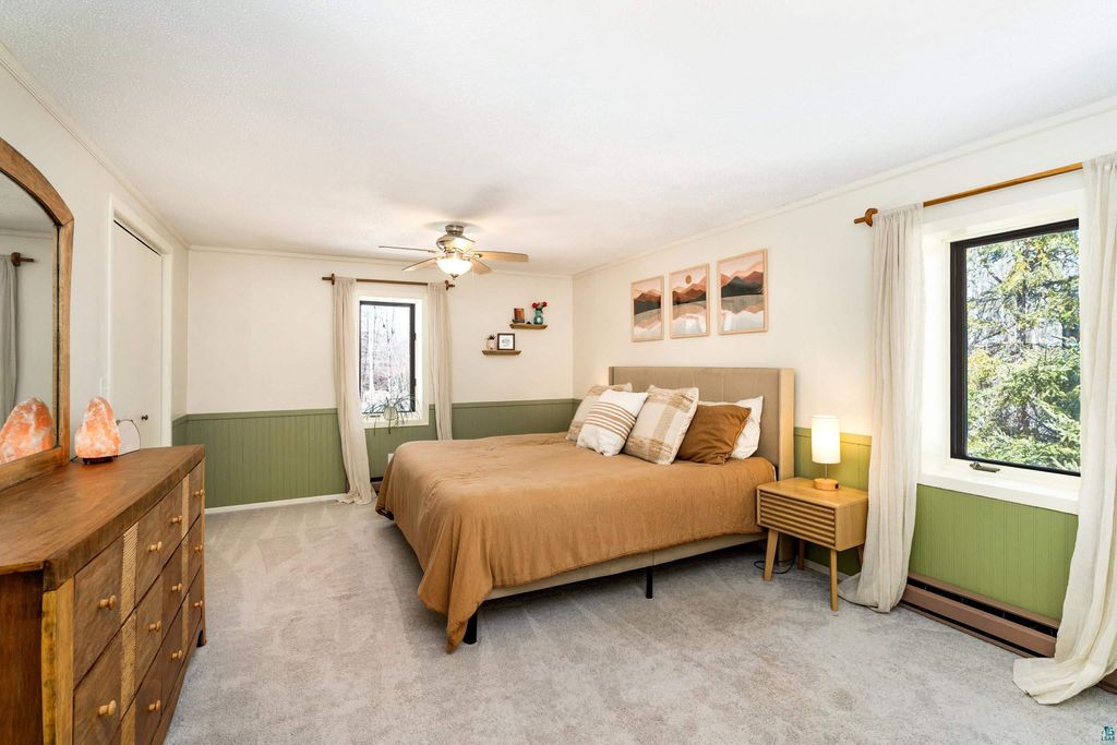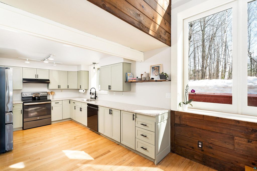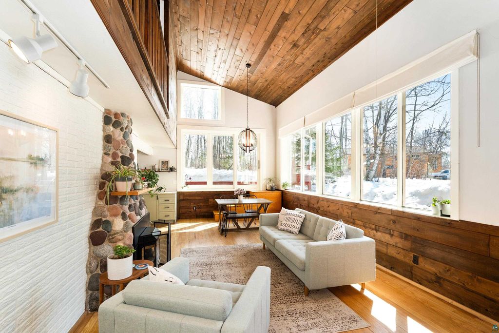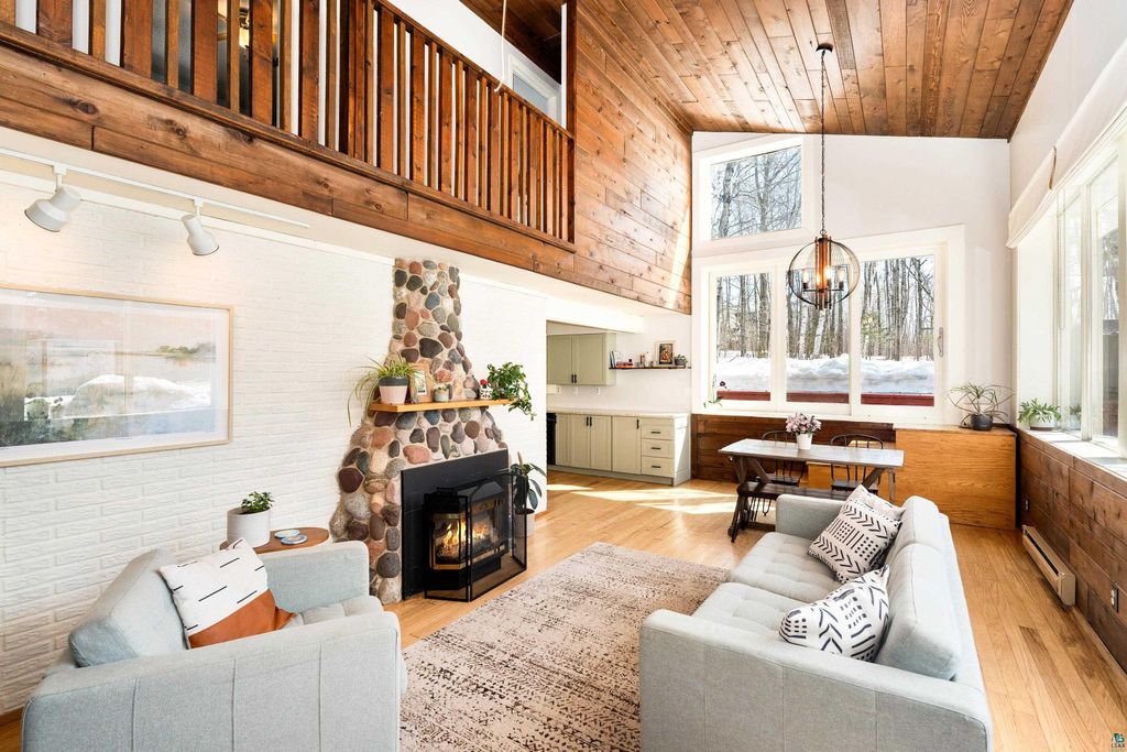 Welcome to this beautiful 4+ bedroom, 2 bathroom home in the heart of Hermantown, where comfort and convenience come together effortlessly. From the moment you step inside, you're greeted by floor-to-ceiling windows that fill the main living space with natural light, perfectly highlighting the warmth of the hardwood floors, rich natural woodwork, and inviting gas fireplace. The open main level offers a seamless flow between the kitchen, dining, and living areas, creating an ideal space for both everyday living and entertaining. A spacious main floor bedroom, ¾ bath, and laundry room add to the home's thoughtful functionality, while a generously sized recreation room provides even more room to gather, relax, and entertain. Upstairs, the lofted design enhances the home's open and airy feel, overlooking the main living space and showcasing the beautiful wood detailing throughout. You'll find three additional bedrooms along with a flexible office space that could easily serve as a fifth bedroom. Set on a wooded lot, this home offers a sense of privacy while still being just minutes from restaurants, shopping, the new YMCA, and the brand-new hockey arena. Thoughtful updates include a new roof and sewer line (2022), newer kitchen appliances, a newer hot water heater, brand new countertops in the kitchen and laundry room, and a newer washer and dryer. With a 2 car garage just steps from the front door and a layout designed for everyday comfort, this is a home you'll love from the moment you arrive.