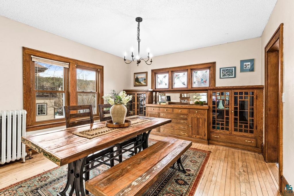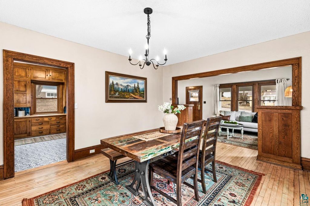 A rare opportunity in Cloquet, this beautifully maintained 4-bedroom, 2-bath home effortlessly blends historic character with thoughtful updates that support modern-day living. From the moment you enter, rich natural woodwork, original built-ins, and timeless architectural details create a warm, inviting atmosphere that feels both grounded and refined. The kitchen has been refreshed with vintage-inspired patterned tile flooring, newer appliances, and a clean, stylish backsplash, offering a space that feels both functional and easy to live in. It flows seamlessly into the dining area, where original built-ins provide both charm and practical storage"”perfect for everyday use or gathering. Upstairs, the fully renovated bathroom offers a bright, clean space with updated finishes designed for comfort and everyday ease. With four bedrooms, the home offers flexibility for a variety of living arrangements, while the lower level provides additional usable living space"”ideal for a second living area, rec room, or guest setup"”complete with a 3/4 bath featuring a walk-in tiled shower and a sauna. Behind the scenes, key improvements have already been completed, including a newer roof, updated main sewer line, and sump pump installation, adding a level of confidence and ease for the next owner. Outside, a detached two-car garage provides ample storage, while the fenced-in backyard and deck create a natural extension of the home"”ideal for relaxing or spending time outdoors. Located near Pinehurst Park with convenient access to everyday amenities, this home offers a balance of character, function, and location that is increasingly hard to find. Don't miss this beautiful home!