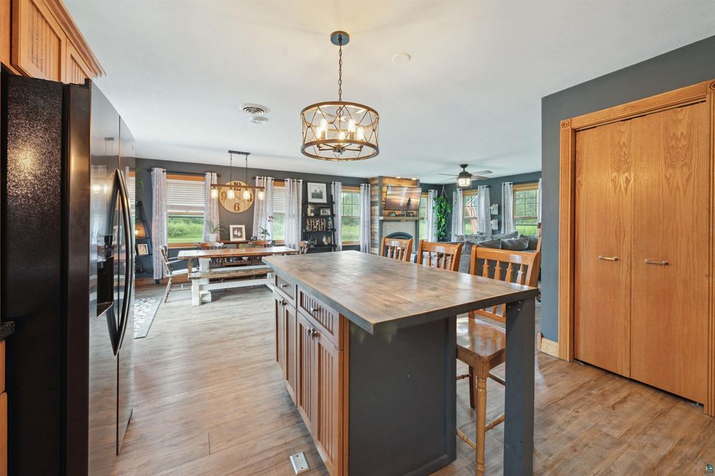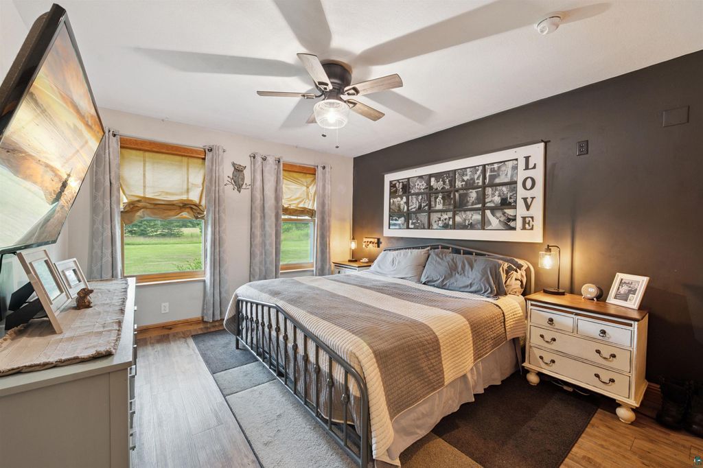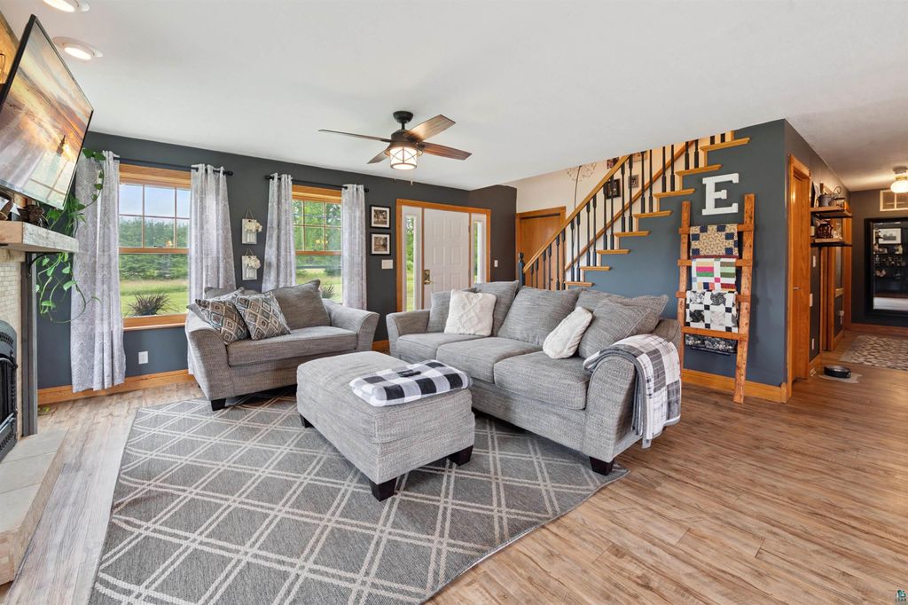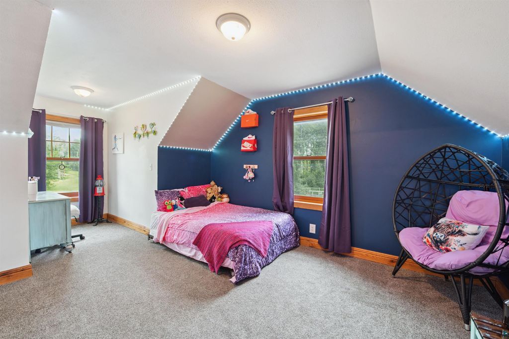This 20-acre contemporary farmhouse, along with several outbuildings, is ready for a new owner and offers a wide range of possibilities. As you step inside, you are greeted by a spacious and open floor plan that blends traditional farmhouse charm with modern elements throughout. The main level features the fireplaced living room, large dining area with the patio right outside the doors and a beautiful kitchen. The kitchen has ample counter space, a pantry, some newer appliances and a large center island that doubles as a breakfast bar. Finishing the main level is a large bedroom, bathroom and main floor laundry which leads to the attached 28x24 garage. Upstairs features 2 good sized rooms and a smaller room, all with dormers. There is also a family room, full bathroom and an extra wide hall which would be great for bookshelves or a little desk. This home includes Marvin windows for energy efficiency and beautiful views, a new roof installed in October and a new Bryant AC unit installed in July. Also, most of the flooring has been replaced during their ownership. Outside is an oasis for fun and storage. The Pole Barn is 40x26 with a 12x40 lean-to and has dual side entrances. There is a 16x12 shed currently set up as a dog kennel on one side and a chicken coop on the other. The last of the outbuildings include an adorable 20x16 insulated bunk house with several optional uses. Whether you envision a large garden or a small hobby farm, there's ample space to bring your dreams to life. The land also ensures privacy and tranquility, making it a perfect escape from the hustle and bustle of everyday life.