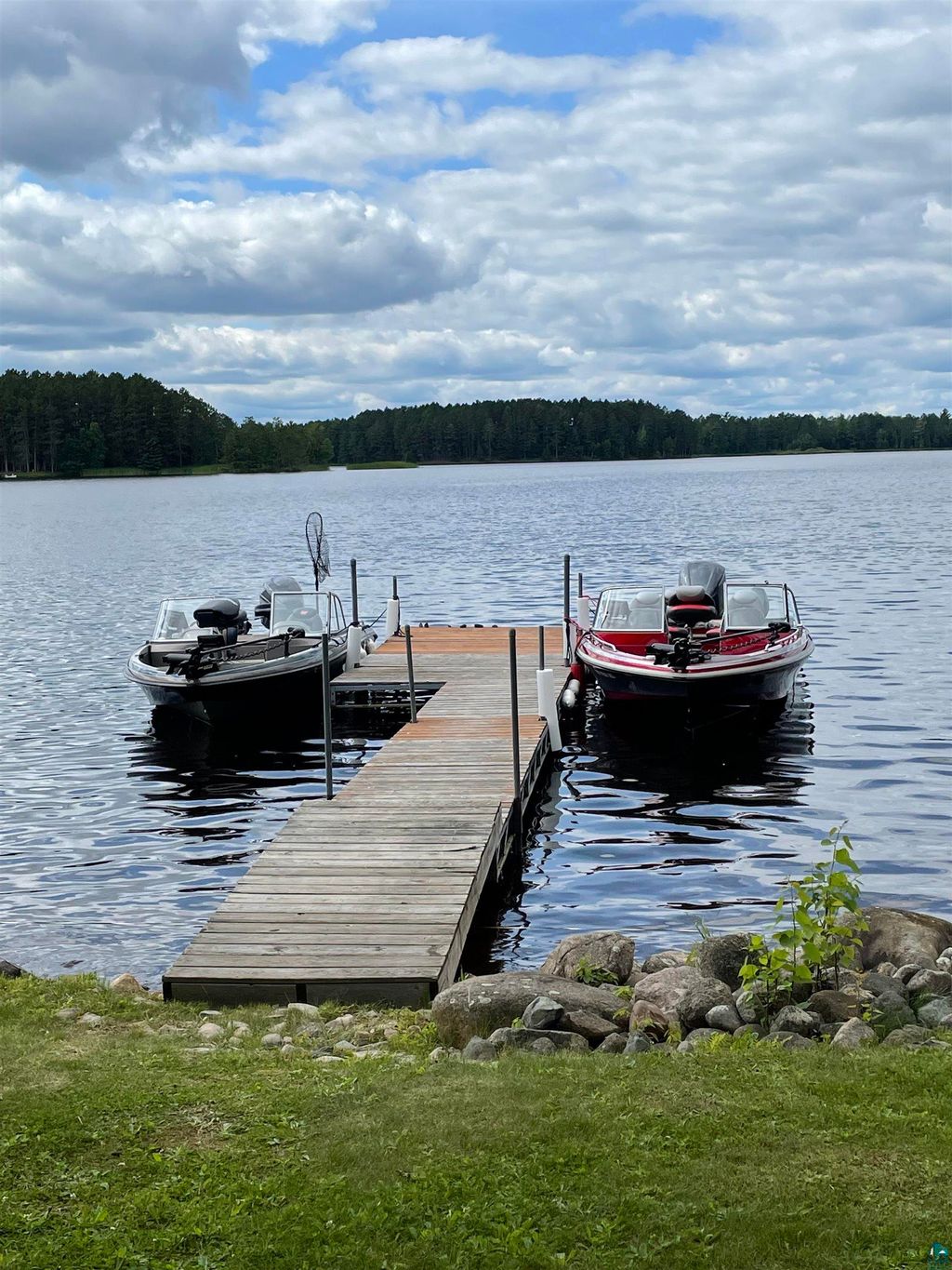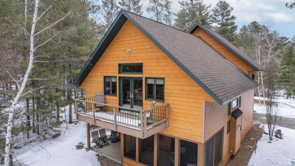 Discover unparalleled lakeside living on the expansive 4,567-acre Whiteface Reservoir. Built in 2005 with an emphasis on quality and comfort, this custom-designed 3-bedroom, 2-bathroom residence offers over 2,300 square feet of meticulously finished living space. The heart of the home is a grand Great Room featuring soaring 24-foot vaulted ceilings and a dramatic stone gas fireplace. Radiant in-floor heating throughout ensures consistent, efficient comfort across all seasons. Transition seamlessly to the outdoors via the screened-in porch, designed for enjoying tranquil lake views and fresh Northwoods air in a protected setting. The upper-level loft serves as a versatile retreat, opening to a private balcony perfectly positioned for sunrise views over the water. The property boasts 140 feet of sandy shoreline, an included 40-foot dock, and a generous 1.28-acre lot that provides exceptional privacy. Extensive vehicle and equipment storage is provided by two separate structures: an attached 2-car garage with an unfinished bonus attic, and a detached 3-car garage featuring a wood-burning fireplace and a second-level expansion opportunity. The exterior is designed for low maintenance, featuring cement board siding, blue stone gravel, and a convenient loop driveway"”all situated on a privately owned (non-leased) parcel. Additional Details: HOA/Assessments: A modest $85 annual assessment covers garbage service. The HOA fee includes comprehensive road maintenance and snow removal. Negotiables: High-quality furnishings are negotiable with an acceptable offer.