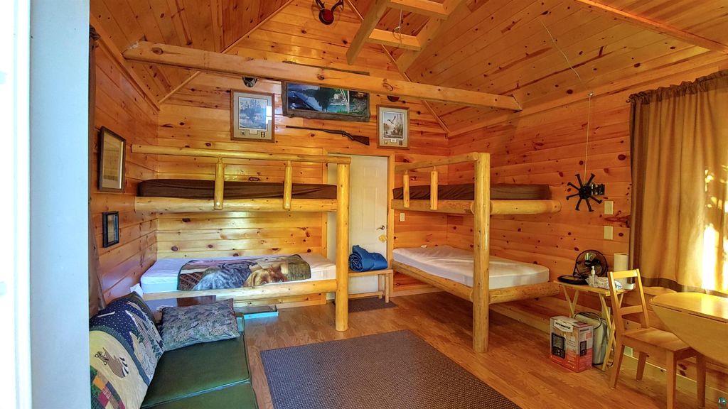 Looking for privacy? This furnished fishing, hunting, and family retreat is located two blocks from the Ash Lake public boat launch. The main cabin, built in 2005, features two bedrooms and one bathroom (with composting toilet) and accommodates up to eight guests. An additional sleeper cabin, constructed in 2013, also offers sleeping arrangements for eight. The property includes a two-car garage (boat included in sale), providing storage space for all the toys. Situated on 3.54 acres, the cabins are ready for new ownership to take advantage of the area's amenities. The location offers convenient access to Pelican, Ash River, Kabetogama, and Voyageurs National Park.