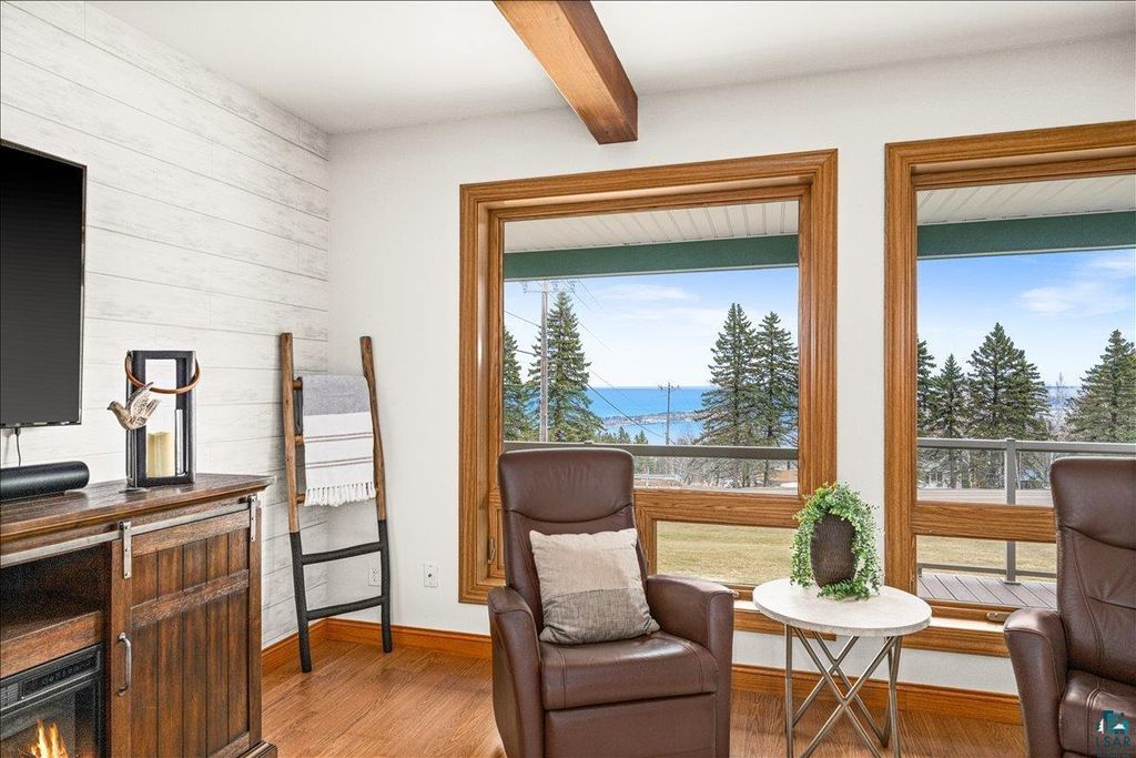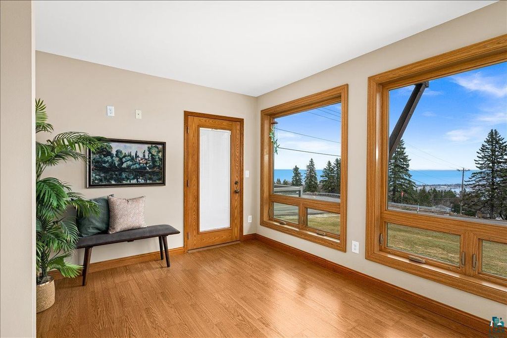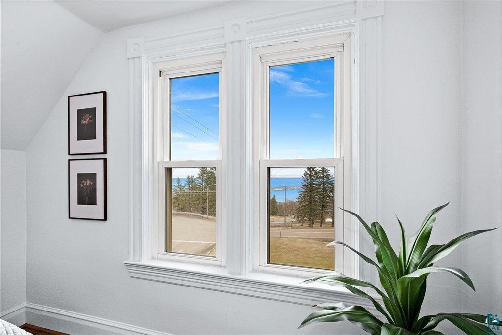 Perched along iconic Skyline Parkway, this beautifully updated home offers sweeping views of Lake Superior, the bay, and city lights. With 3 bedrooms, 2 bathrooms, and a double wide detached garage, the home blends classic character with meaningful updates, including a renovated kitchen with quartz countertops and new appliances, updated flooring upstairs, and fresh paint. The spacious layout is paired with a private primary bath featuring a jetted tub and separate shower, creating a comfortable retreat within the home. Whether enjoying the views from inside or taking in the setting from outside, this property offers a rare combination of scenery, space, and everyday livability in one of Duluth's most distinctive locations.
