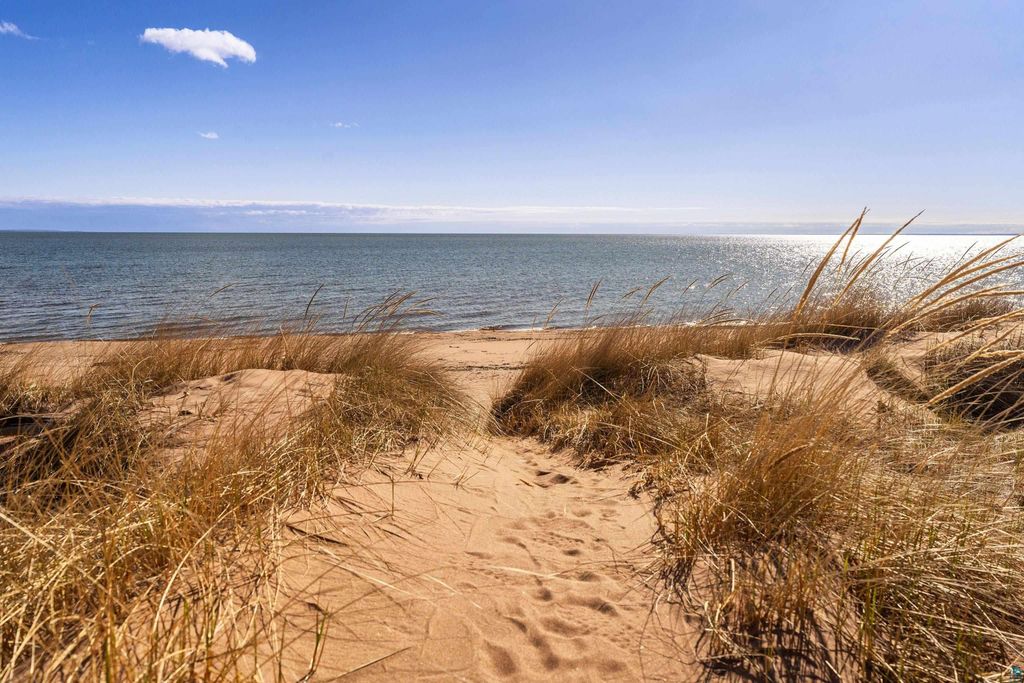 Life on Lake Superior, with its dunes and miles of beach is yours! Set on the lake side of Park Point, this petite retreat opens right out to the sand beach and miles of Lake Superior shoreline"”your backyard is sand, water & sky. Completely renovated with a fresh cottage feel, this home makes the most of every inch. Original hardwood floors bring warmth and character, while the updated kitchen and expertly designed built-ins keep it practical and easy to live in. Two ensuite bedrooms offer comfort and privacy, each with its own personality"”one features charming penny tile & a soaking tub in the guest suite and the another quality tiled & darling finished primary bath that feels just right for the setting.Step outside and it only gets better. A fully fenced yard creates a private space for relaxing after the beach, and the addition of an outdoor sauna gives it that true North Shore lifestyle touch. The newer one-plus attached garage on the south side adds valuable storage and function, while the clean, unfinished lower level offers even more room for storage or future ideas.This home proves that "small" can live big. It's efficient, inviting, and perfectly placed for anyone dreaming of a Lake Superior cottage lifestyle"”simple, intentional, and surrounded by one of Duluth's most iconic settings. Park Point Beach, The Lift Bridge, Amsoil Arena, Canal Park boutiques, restaurants and hotels and the finish line of Grandma's Marathon!